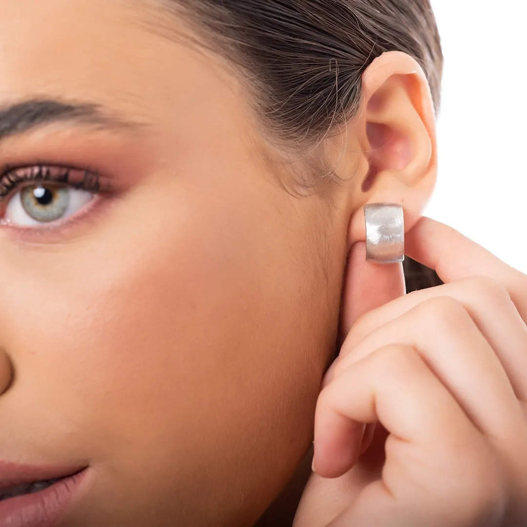 Oxzen σκουλαρίκια κρίκοι ασημένιοι φαρδιοί σαγρέ