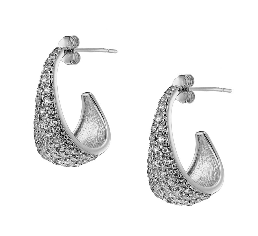 Oxzen σκουλαρίκια κρίκοι ασημένιοι φαρδύ γεμάτοι με ζιργκόν