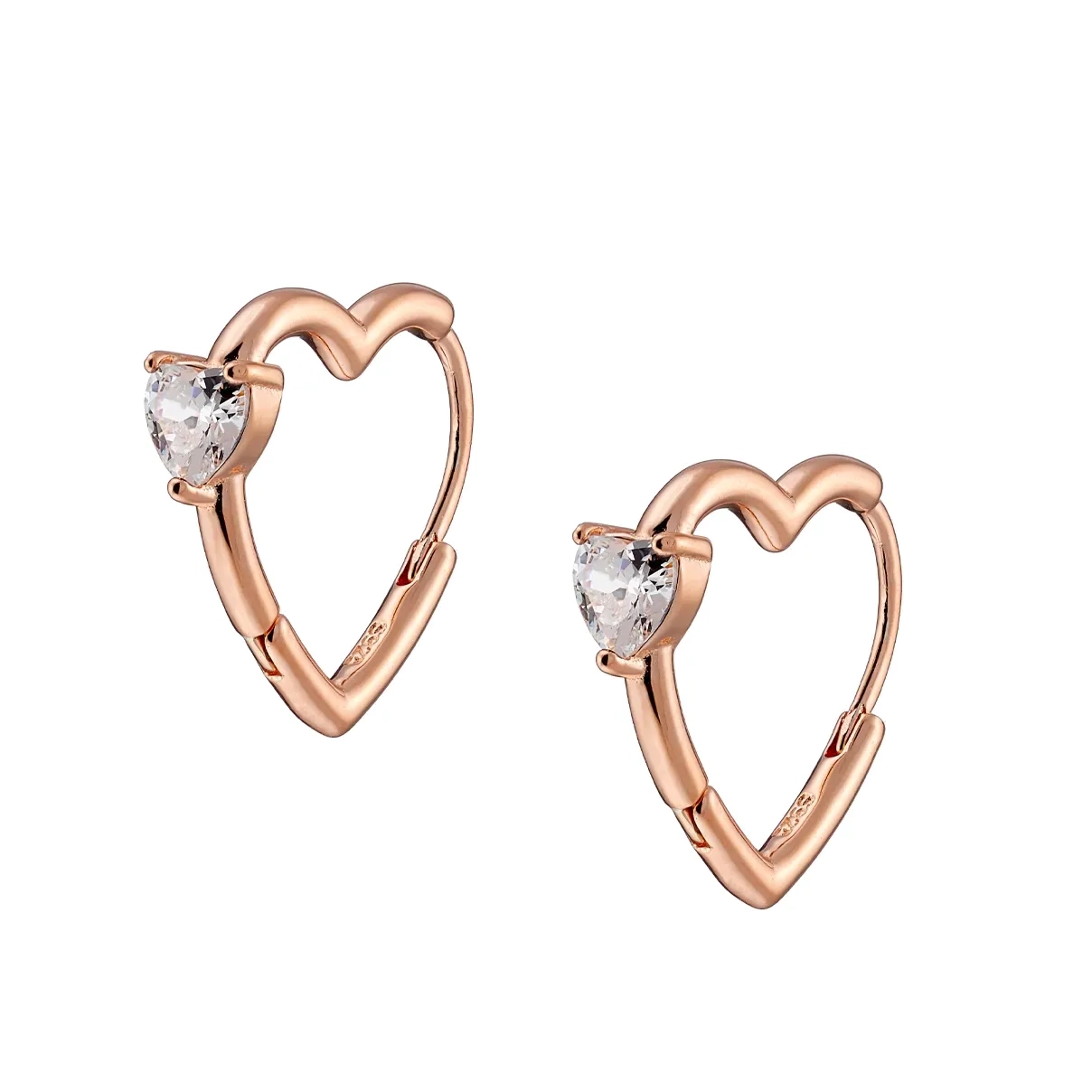 Oxzen σκουλαρίκια κρίκοι ασημένιοι καρδιά με λευκό ζιργκόν