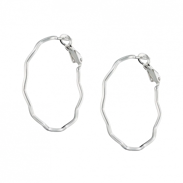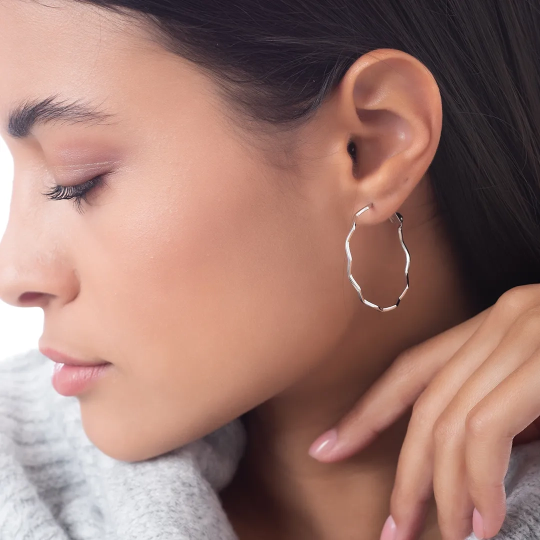 Oxzen σκουλαρίκια κρίκοι ασημένιοι κυματιστοί 30mm