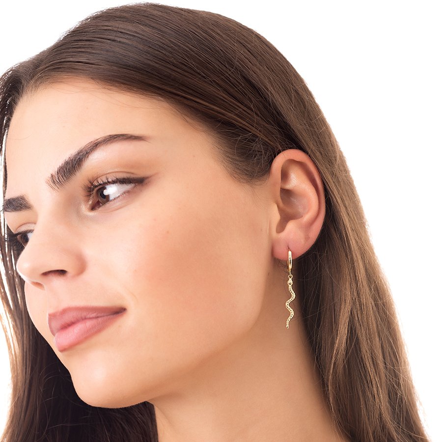 Oxzen σκουλαρίκια κρίκοι ασημένιοι με φιδάκι κρεμαστό