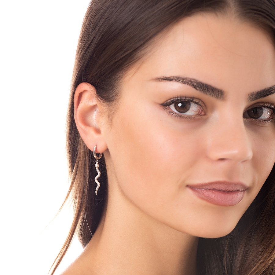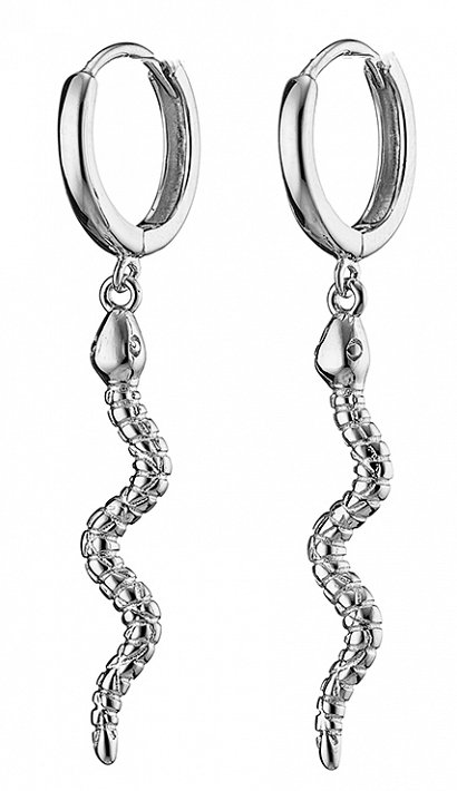 Oxzen σκουλαρίκια κρίκοι ασημένιοι με φιδάκι κρεμαστό