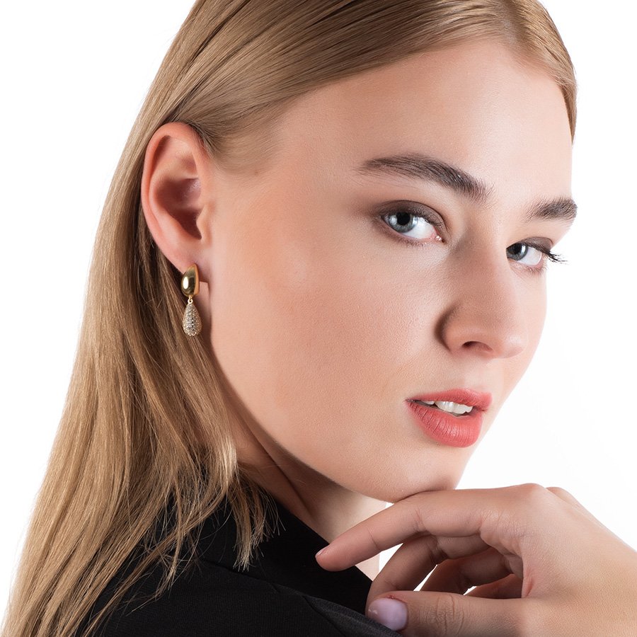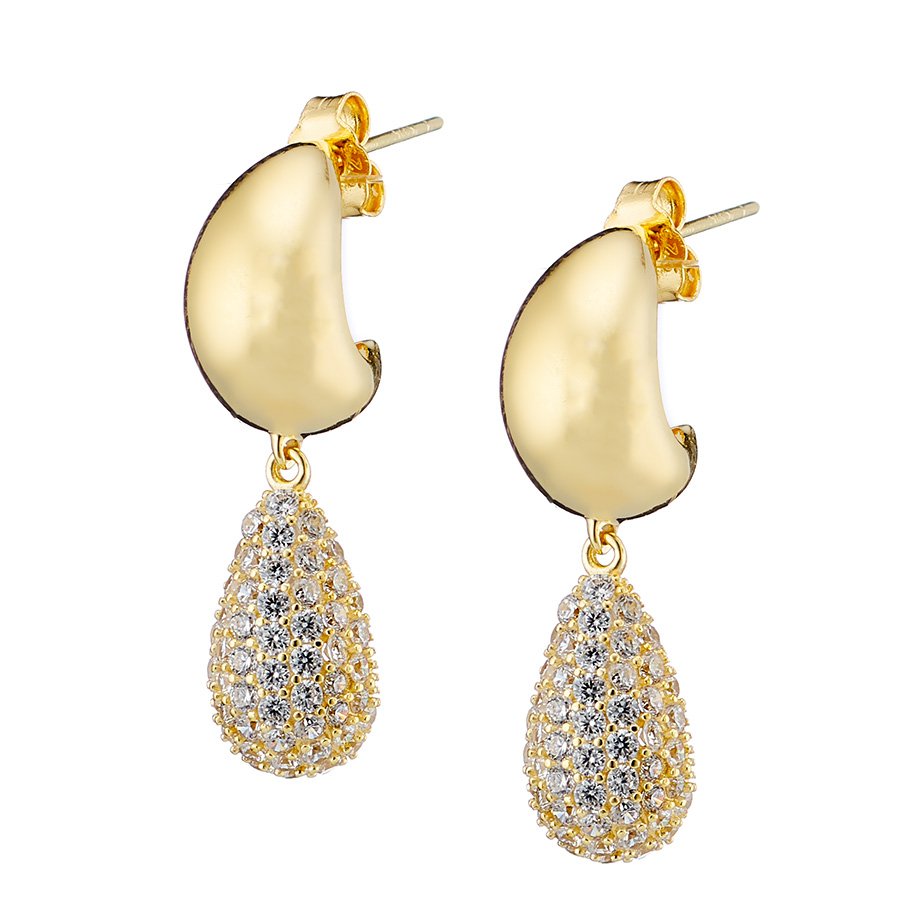 Oxzen σκουλαρίκια κρίκοι ασημένιοι με κρεμαστό δάκρυ με ζιργκόν