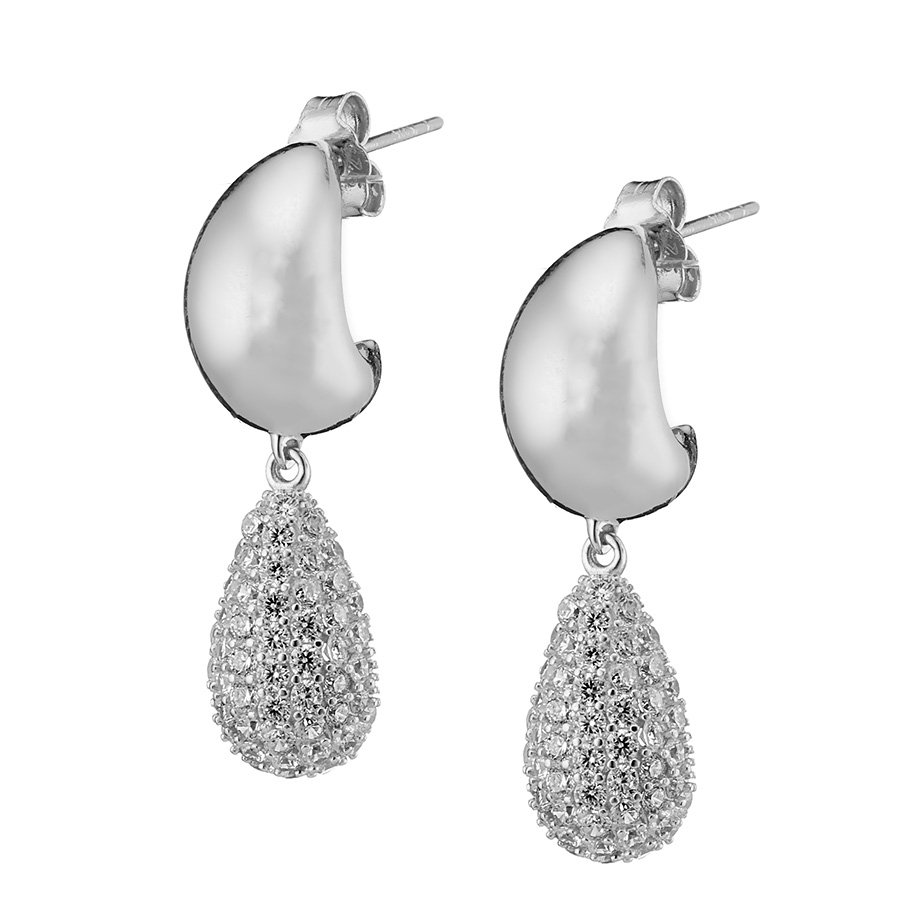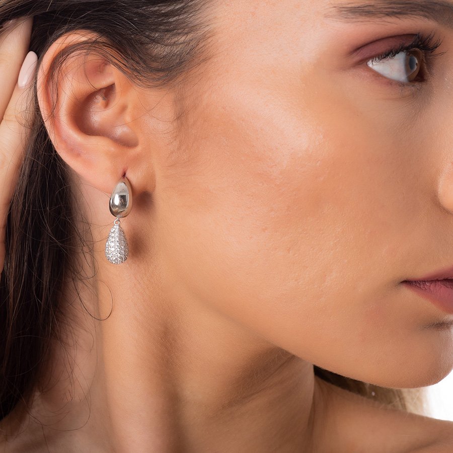 Oxzen σκουλαρίκια κρίκοι ασημένιοι με κρεμαστό δάκρυ με ζιργκόν