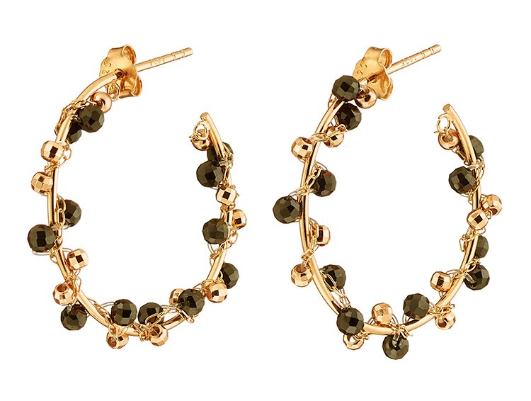 Oxzen σκουλαρίκια κρίκοι ασημένιοι σε χρυσό με πέτρες Σπινέλιο