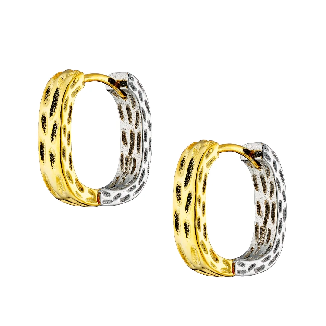 Oxzen σκουλαρίκια κρίκοι ασημένιοι τετραγωνισμένοι two tone