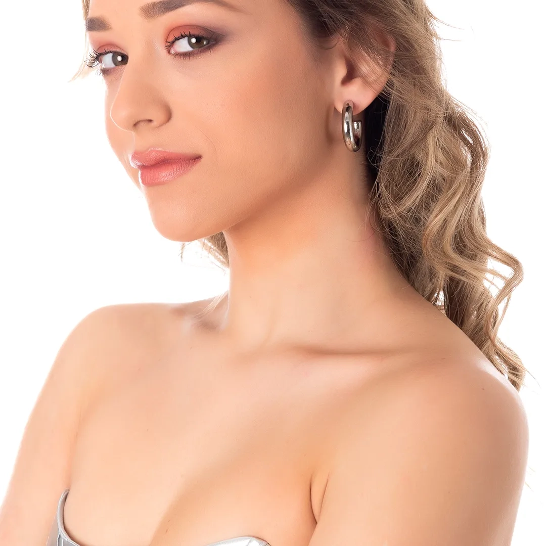 Oxzen σκουλαρίκια κρίκοι ατσάλινοι χοντροί 30mm γιαλιστεροί