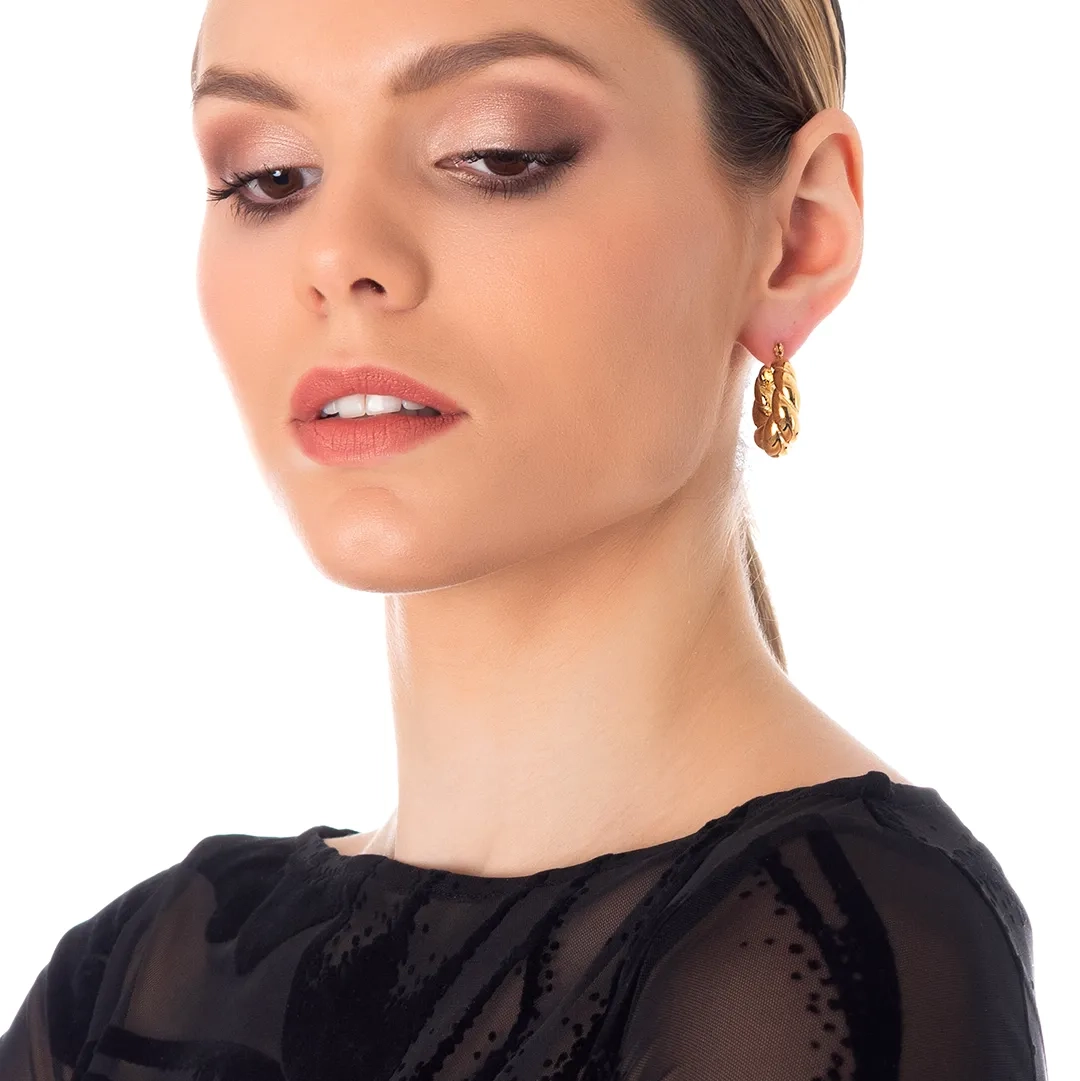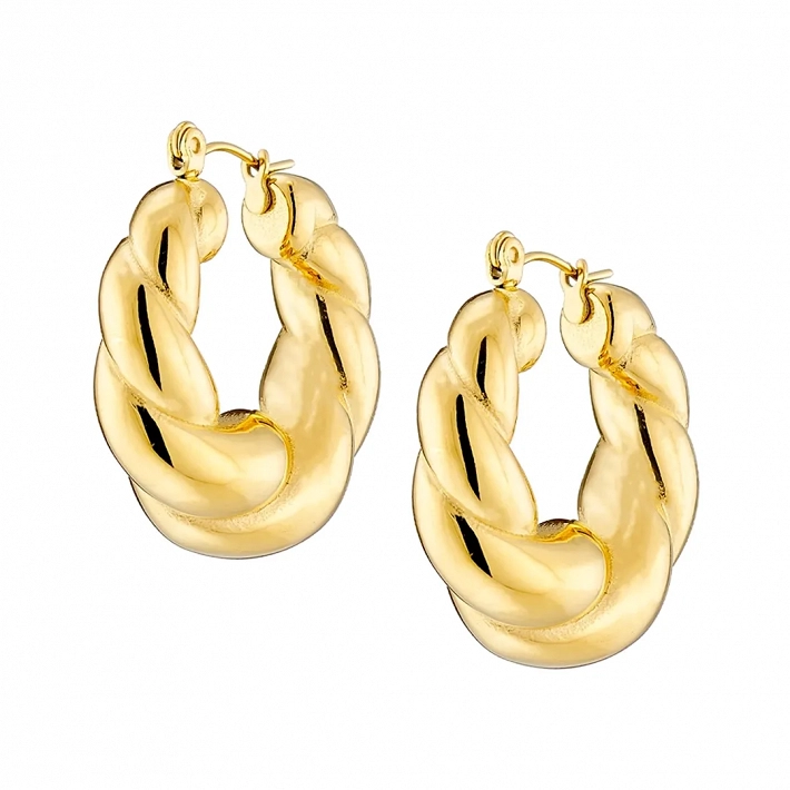 Oxzen σκουλαρίκια κρίκοι ατσάλινοι επιχρυσωμένοι Twist Chunky Croissant 28mm