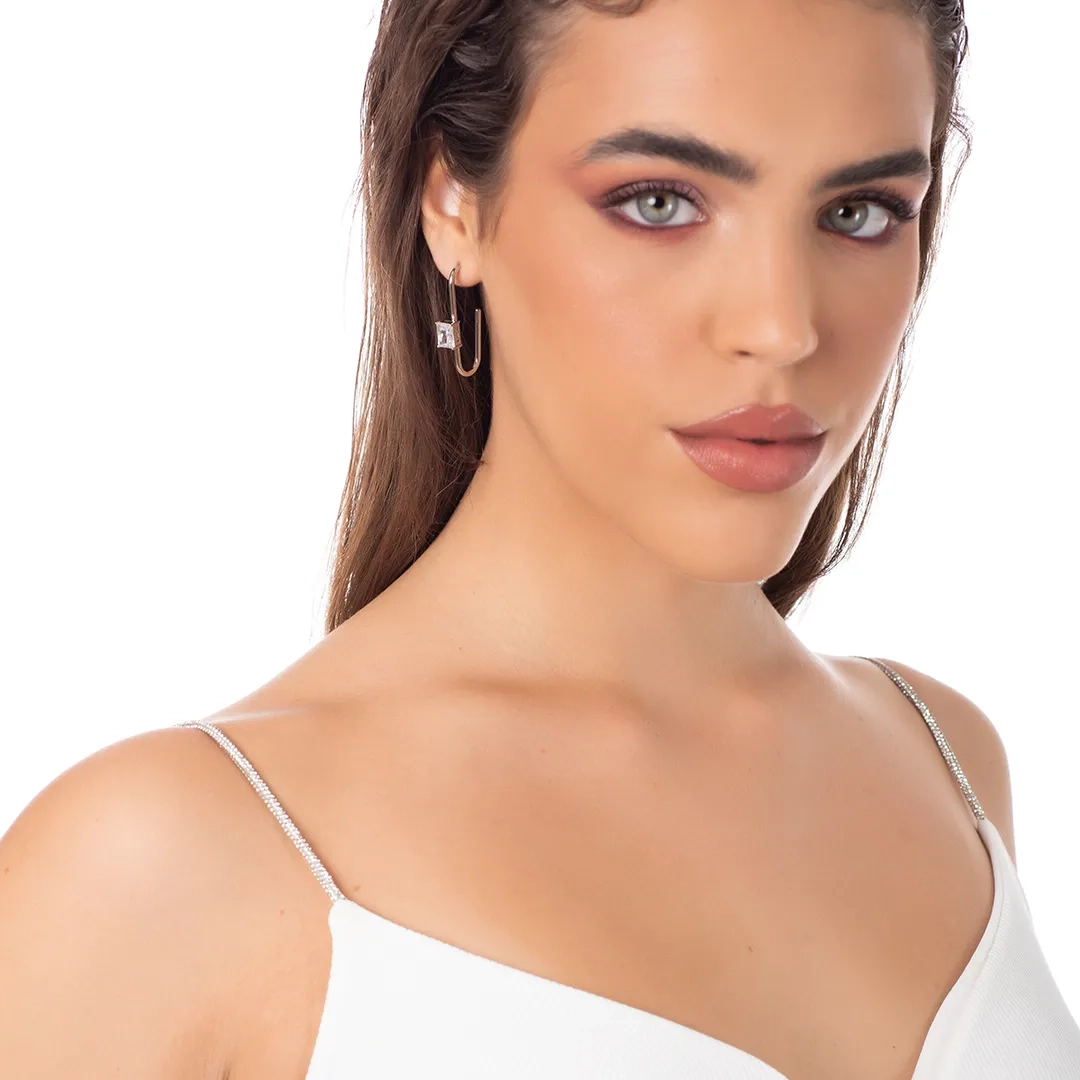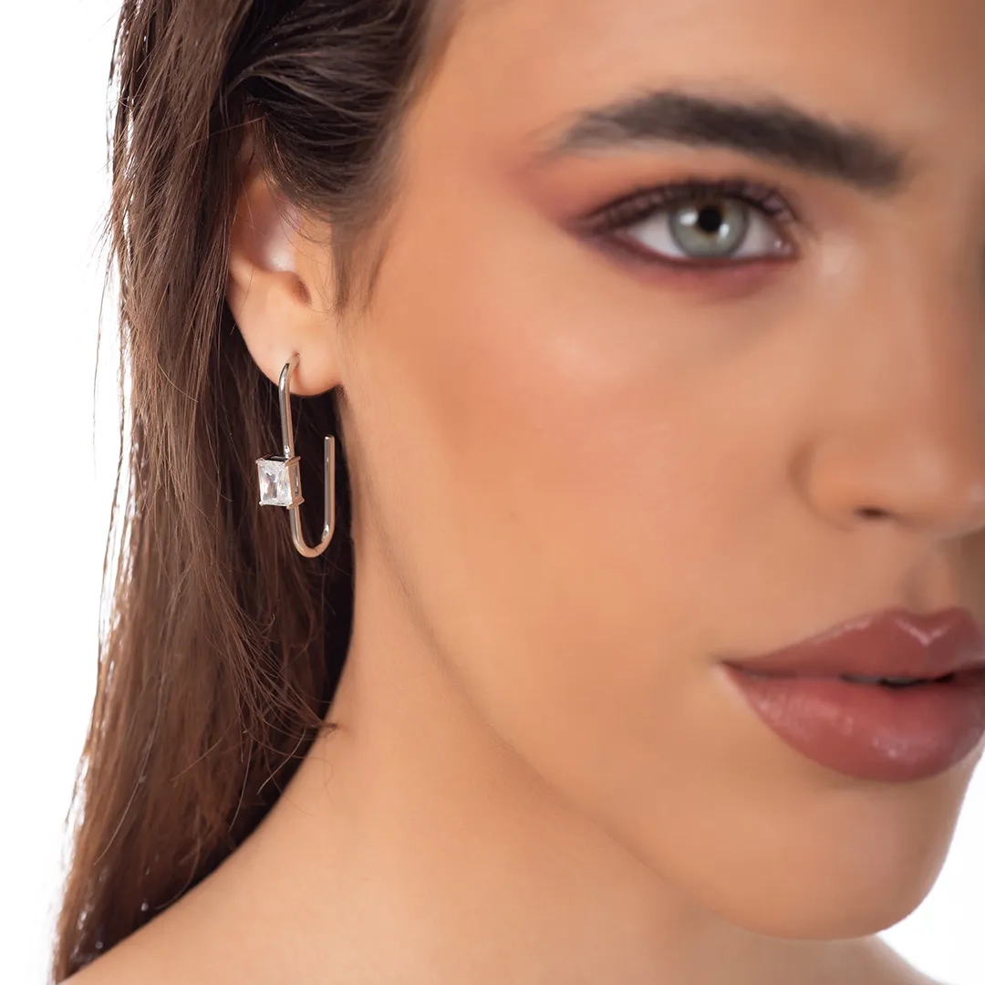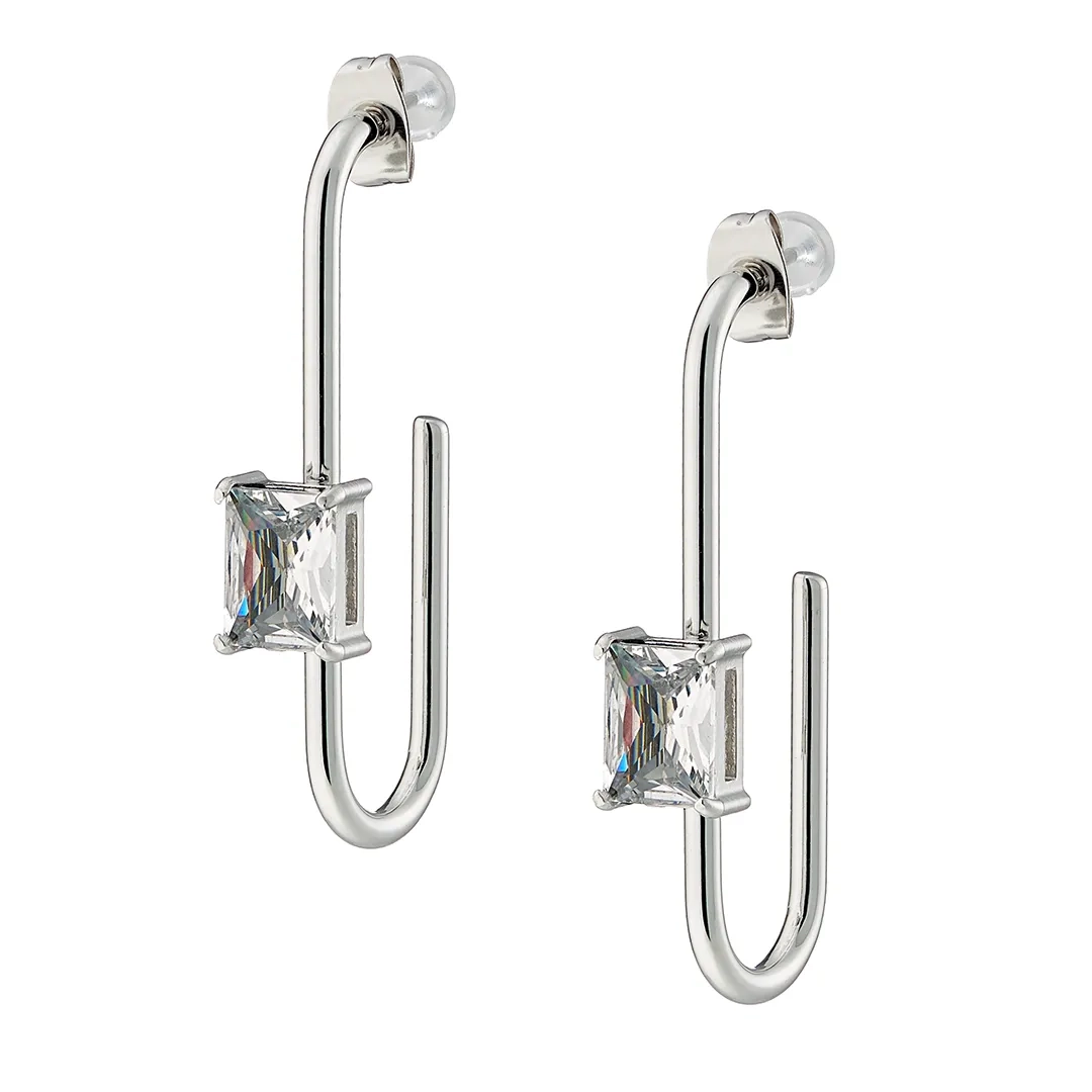 Oxzen σκουλαρίκια κρίκοι ατσάλινοι μακρόστενοι με ζιργκόν