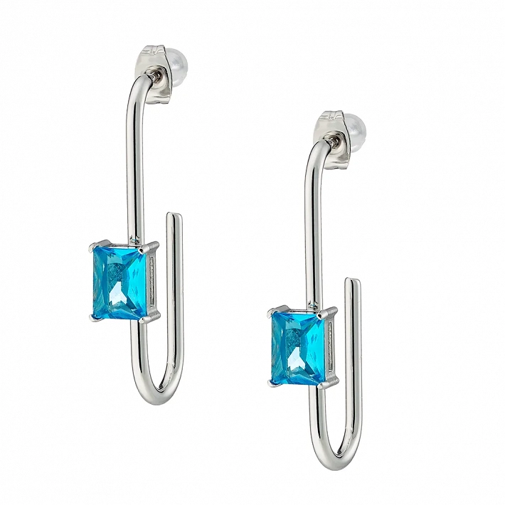 Oxzen σκουλαρίκια κρίκοι ατσάλινοι μακρόστενοι με ζιργκόν