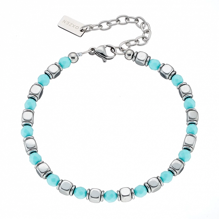 Oxzen Unisex βραχιόλι από ανοξείδωτο ατσάλι με τυρκουάζ ορυκτές πέτρες