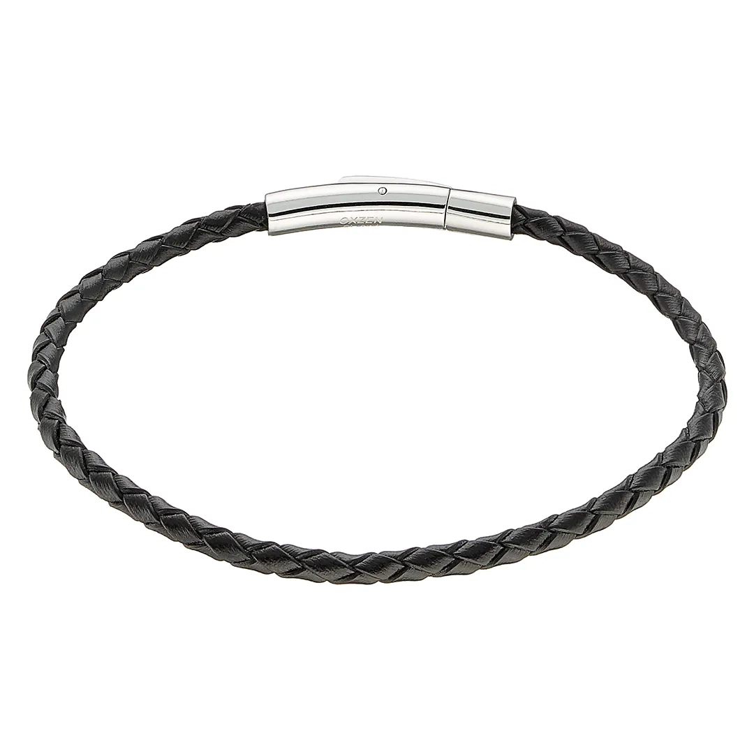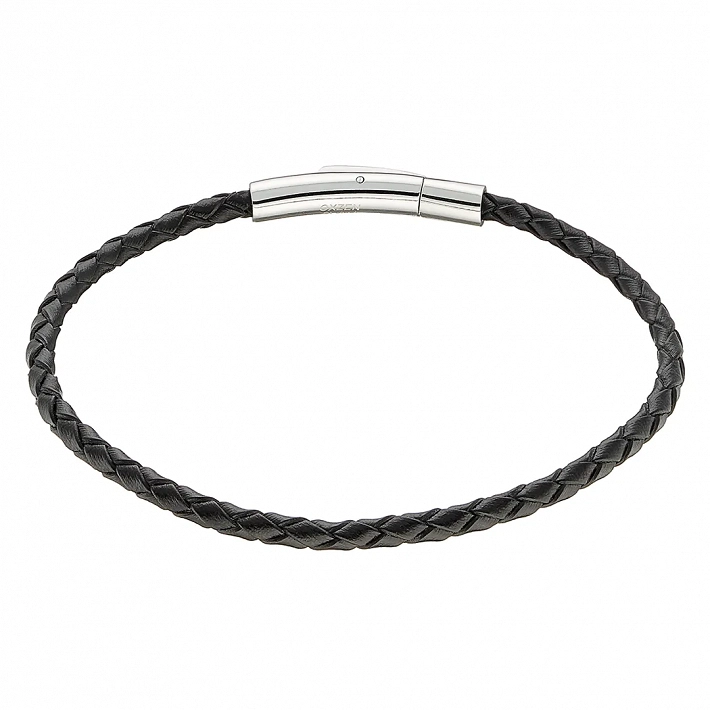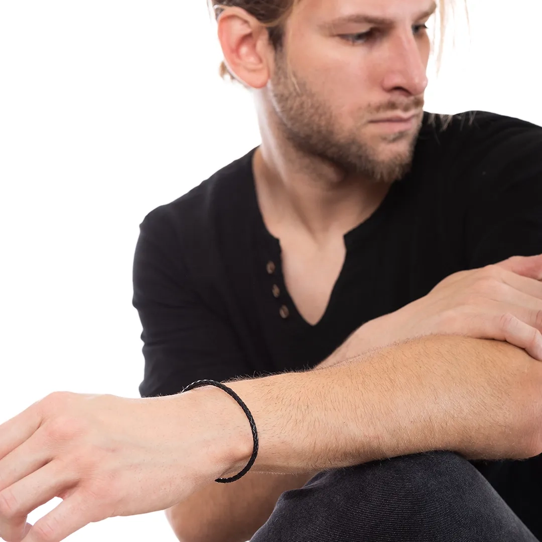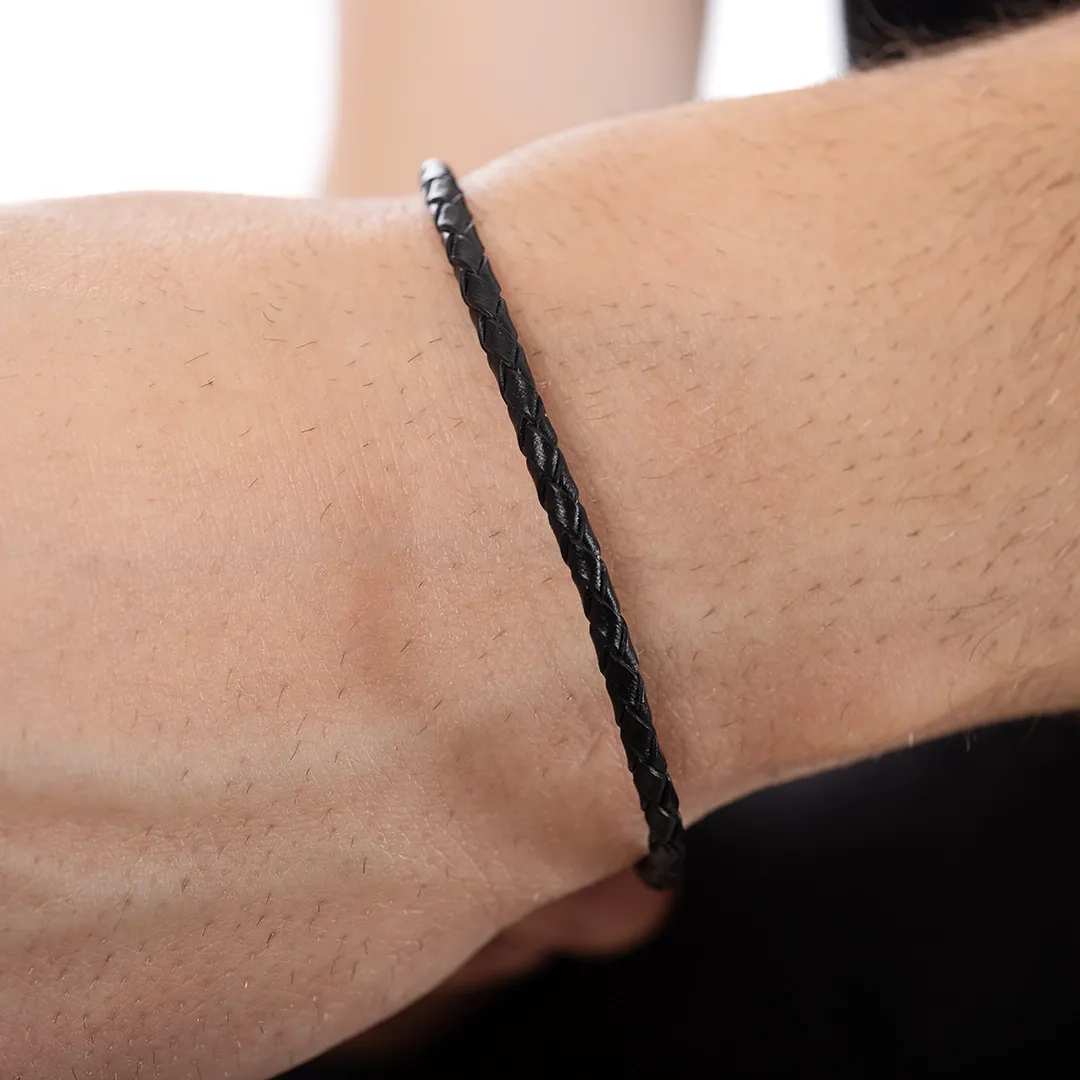 Βραχιόλι ατσάλινο με δέρμα μαύρο και κούμπωμα μαγνήτη