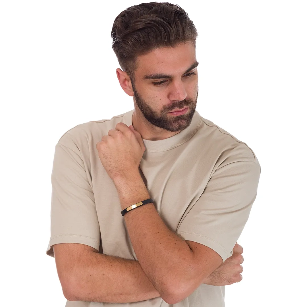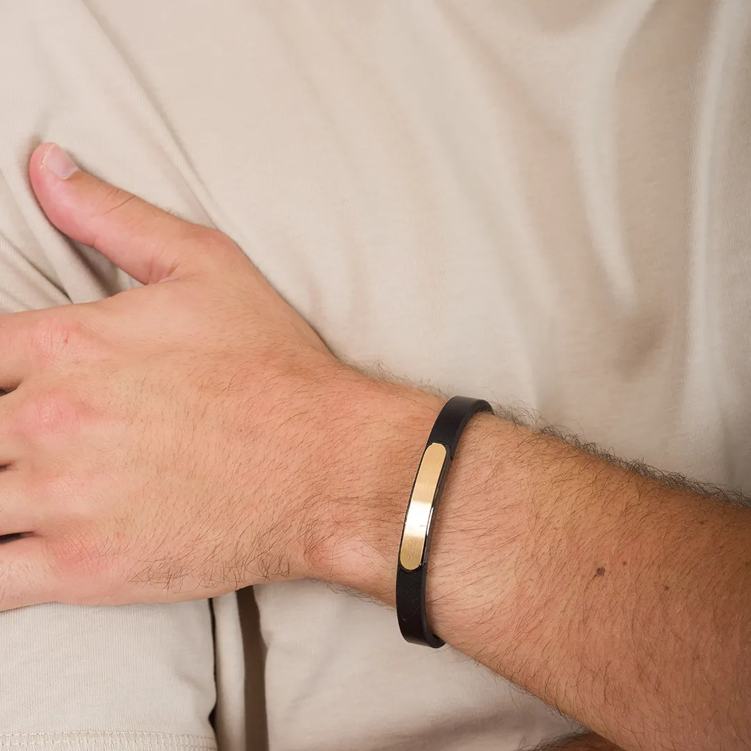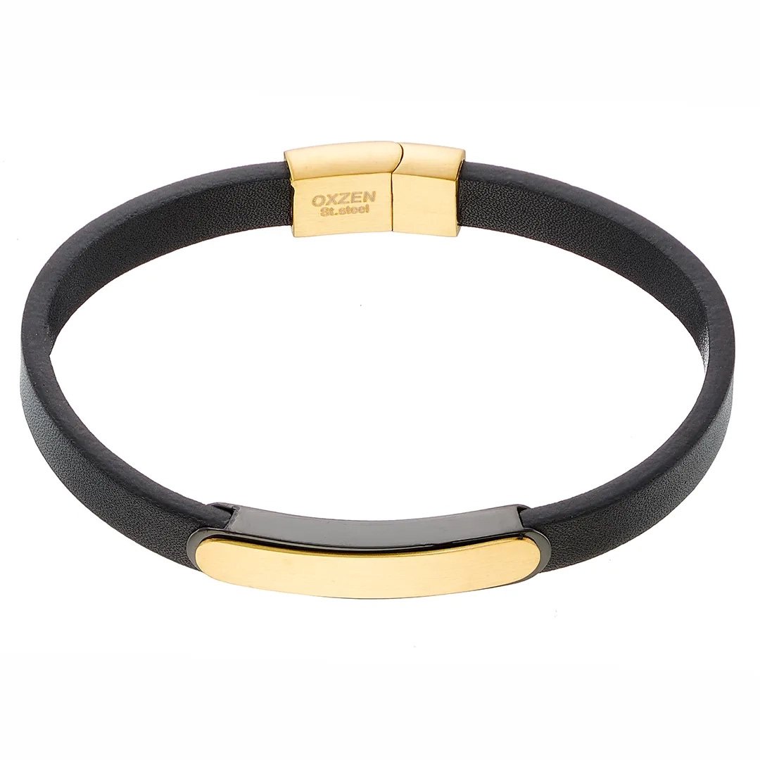 Βραχιόλι ατσάλινο με δέρμα μαύρο και κούμπωμα μαγνήτη