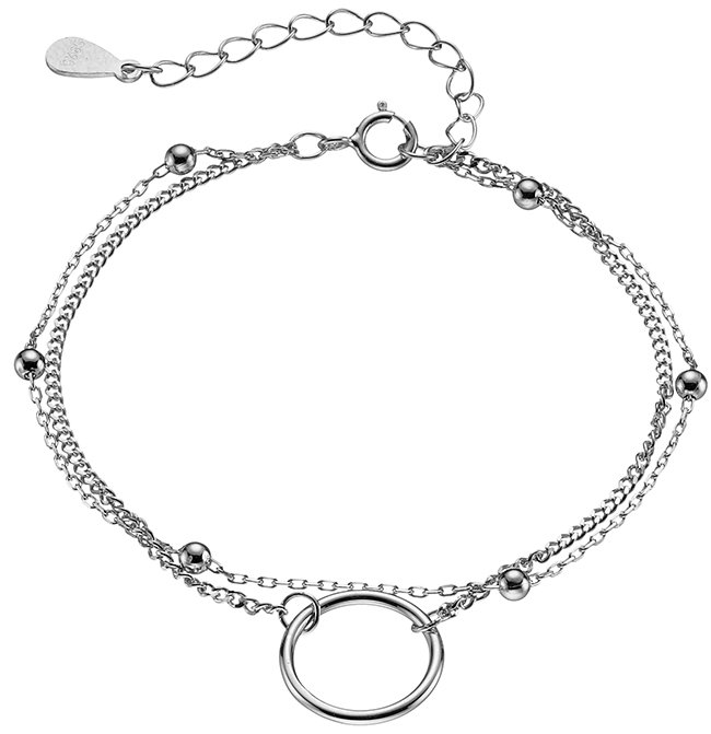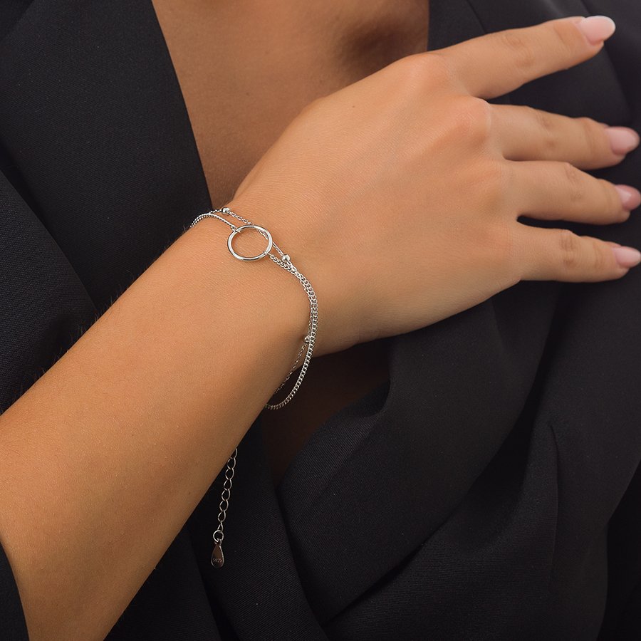 Oxzen βραχιόλι ασημένιο αλυσίδα διπλή με κύκλο