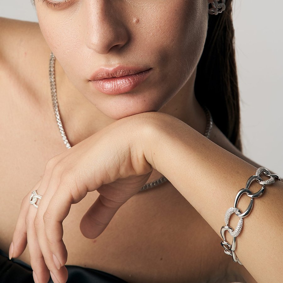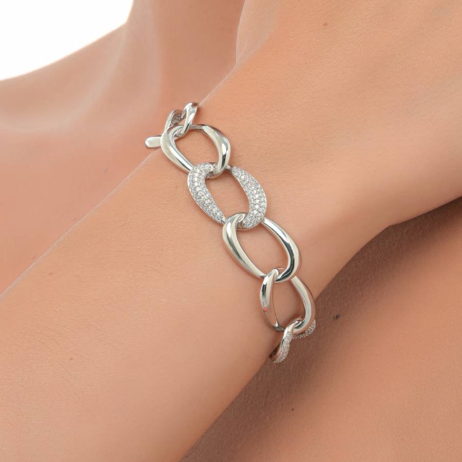 Oxzen βραχιόλι ασημένιο αλυσίδα σπαστή με πέτρες ζιργκόν