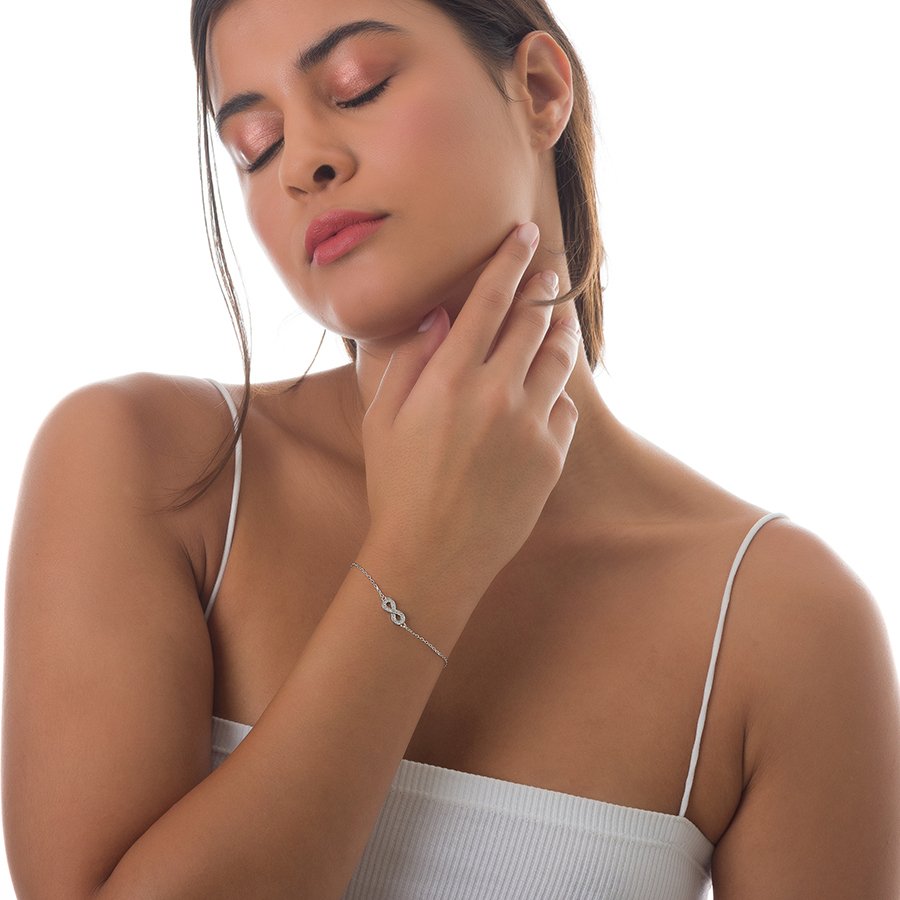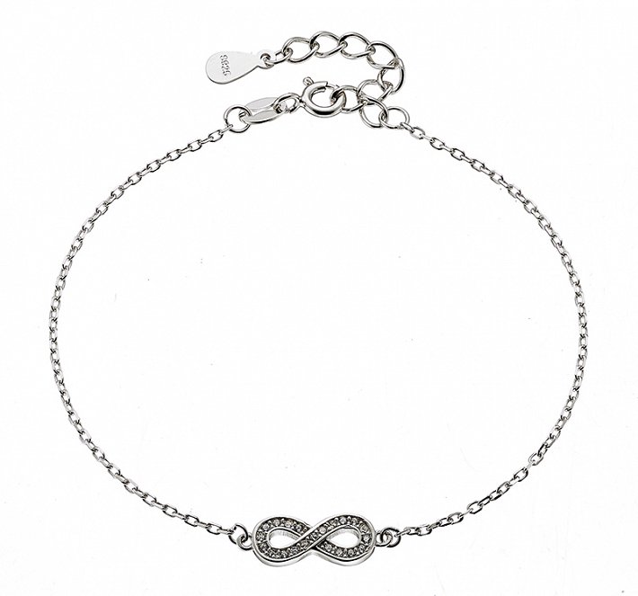 Oxzen βραχιόλι ασημένιο διπλό με άπειρο και λευκά ζιργκόν