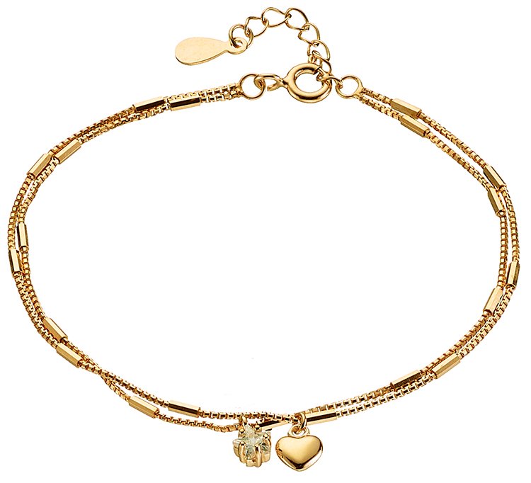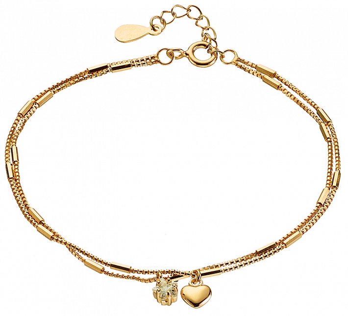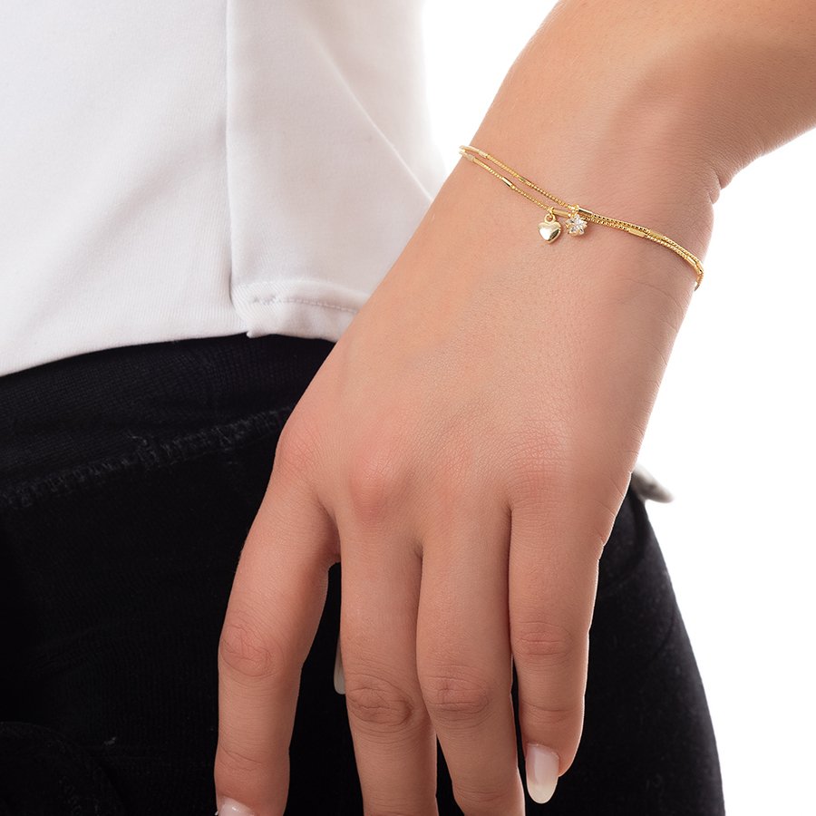 Oxzen βραχιόλι ασημένιο διπλό με καρδιά και πέτρα ζιργκόν