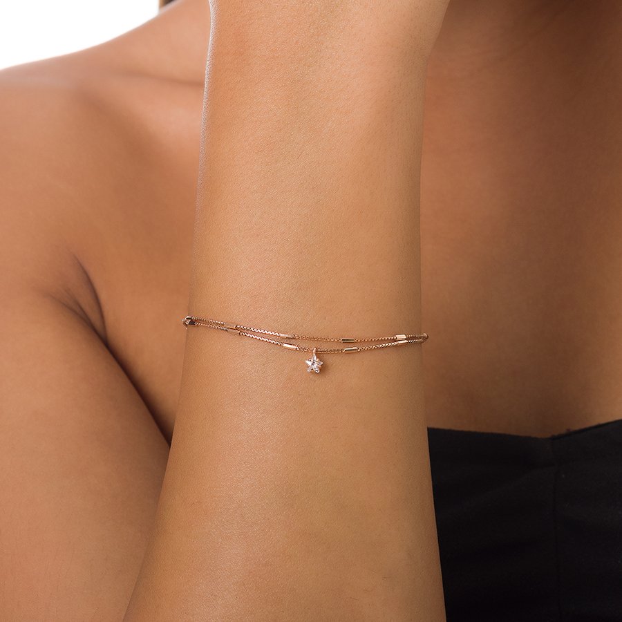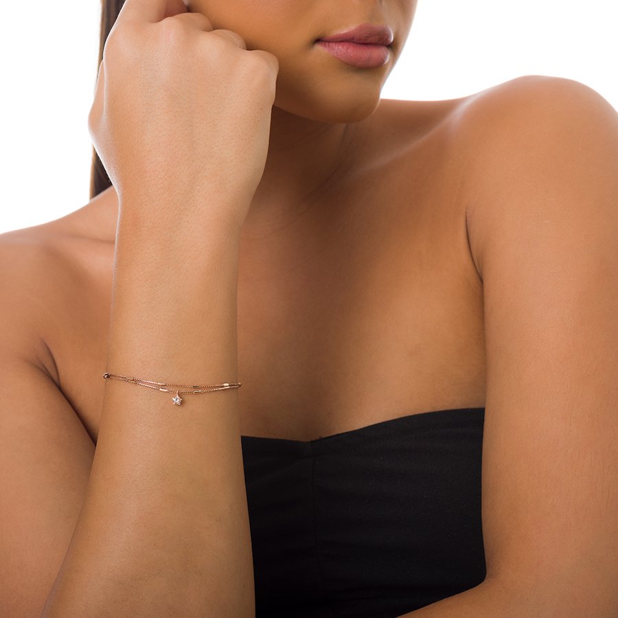 Oxzen βραχιόλι ασημένιο διπλό με πέτρα ζιργκόν