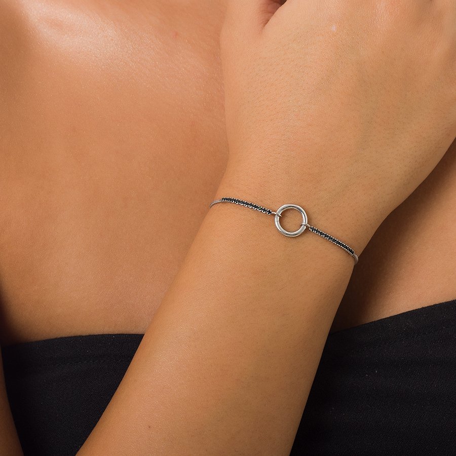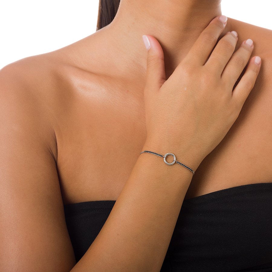 Oxzen βραχιόλι ασημένιο κύκλος με μαύρα ζιργκόν