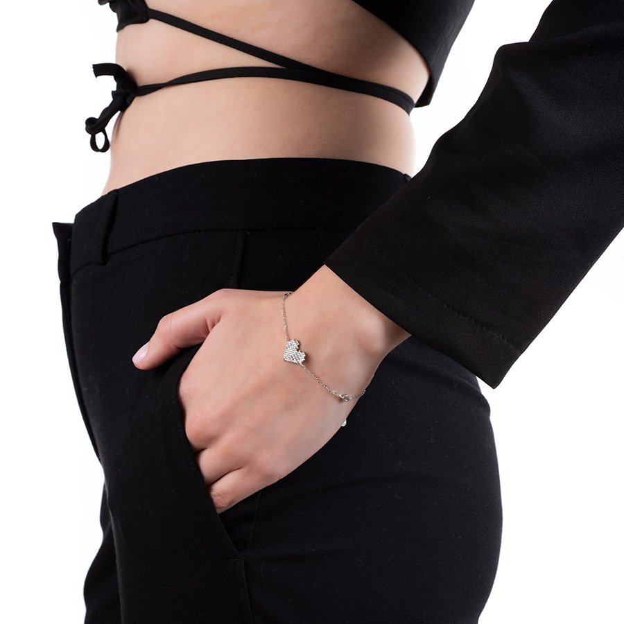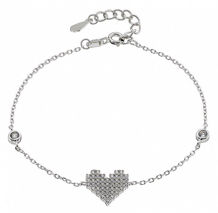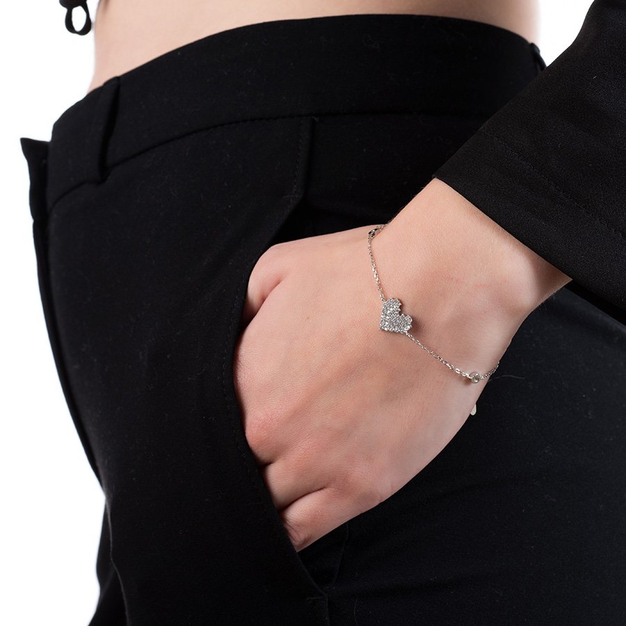 Oxzen βραχιόλι ασημένιο με καρδιά και λευκά ζιργκόν