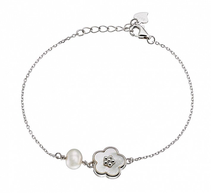Oxzen βραχιόλι ασημένιο με μαργαρίτα οπάλιο και πέρλα