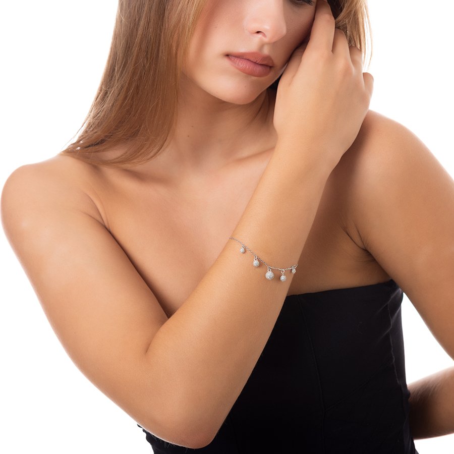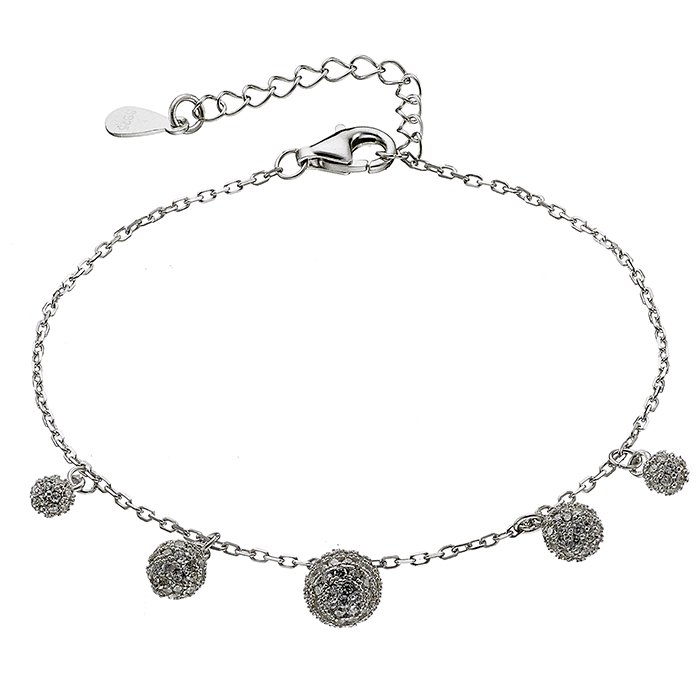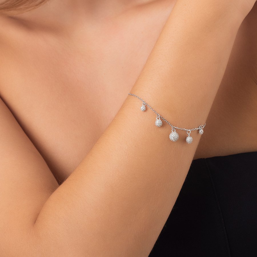 Oxzen βραχιόλι ασημένιο με μπιλάκια και πέτρες ζιργκόν
