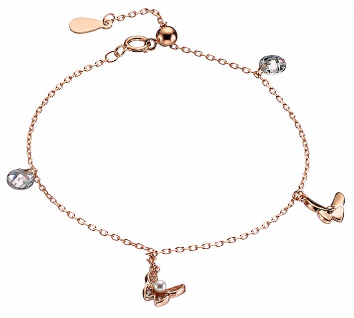 Oxzen βραχιόλι ασημένιο πεταλούδες και πέτρες ζιργκόν