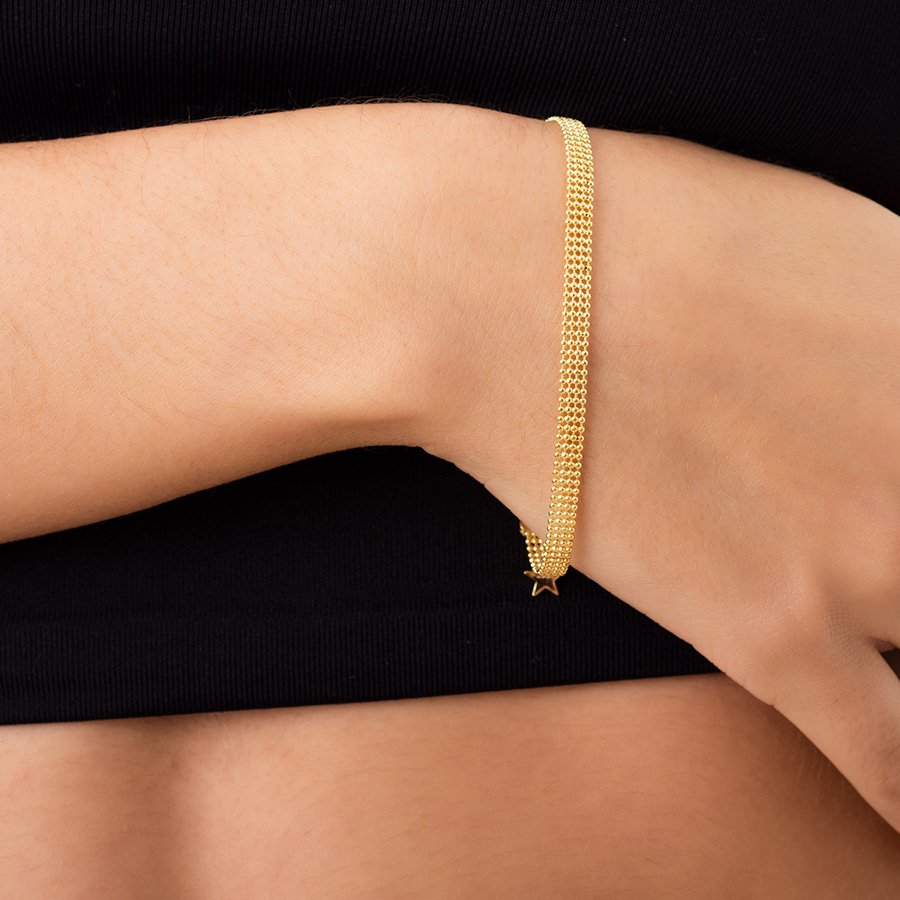 Oxzen βραχιόλι ασημένιο σε χρυσό αλυσίδα πλεκτή