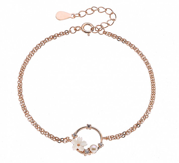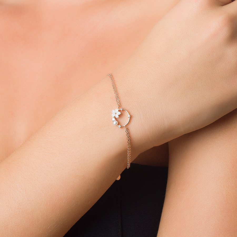 Oxzen βραχιόλι ασημένιο στεφανάκι με μαργαρίτα και περλίτσες