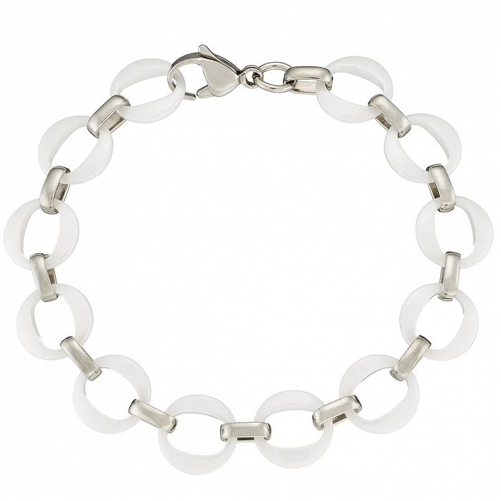 Oxzen βραχιόλι ατσάλινο με λευκά κεραμικά στοιχεία