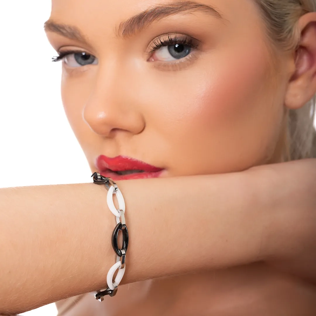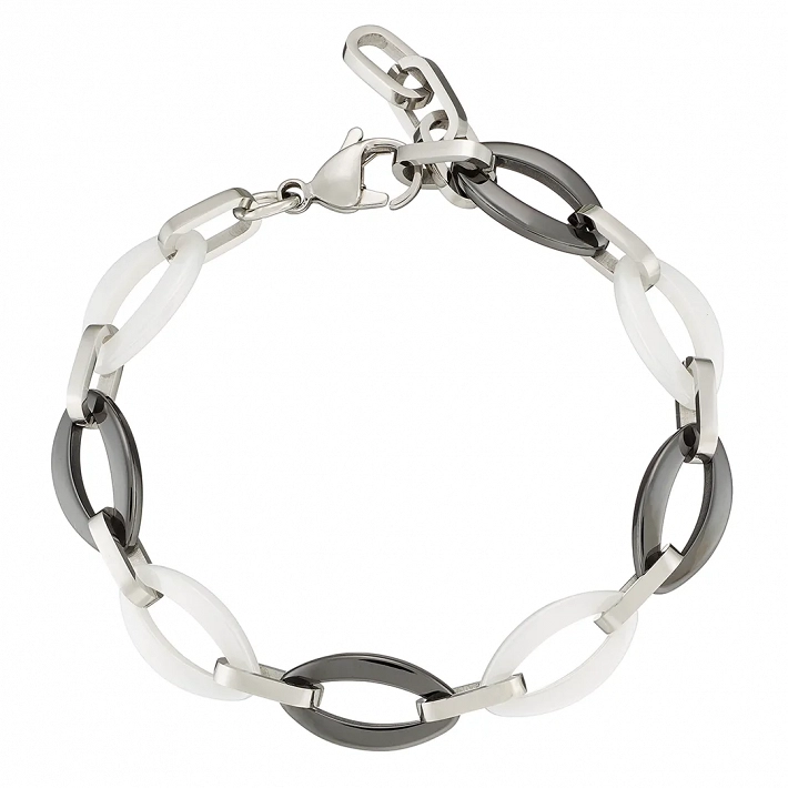 Oxzen βραχιόλι ατσάλινο με μαύρα και λευκά κεραμικά στοιχεία