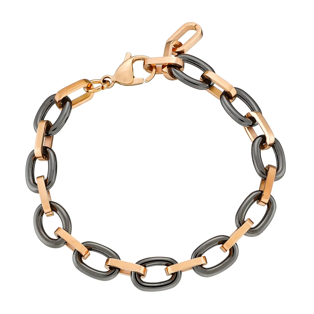 Oxzen βραχιόλι ατσάλινο με μαύρα κεραμικά στοιχεία