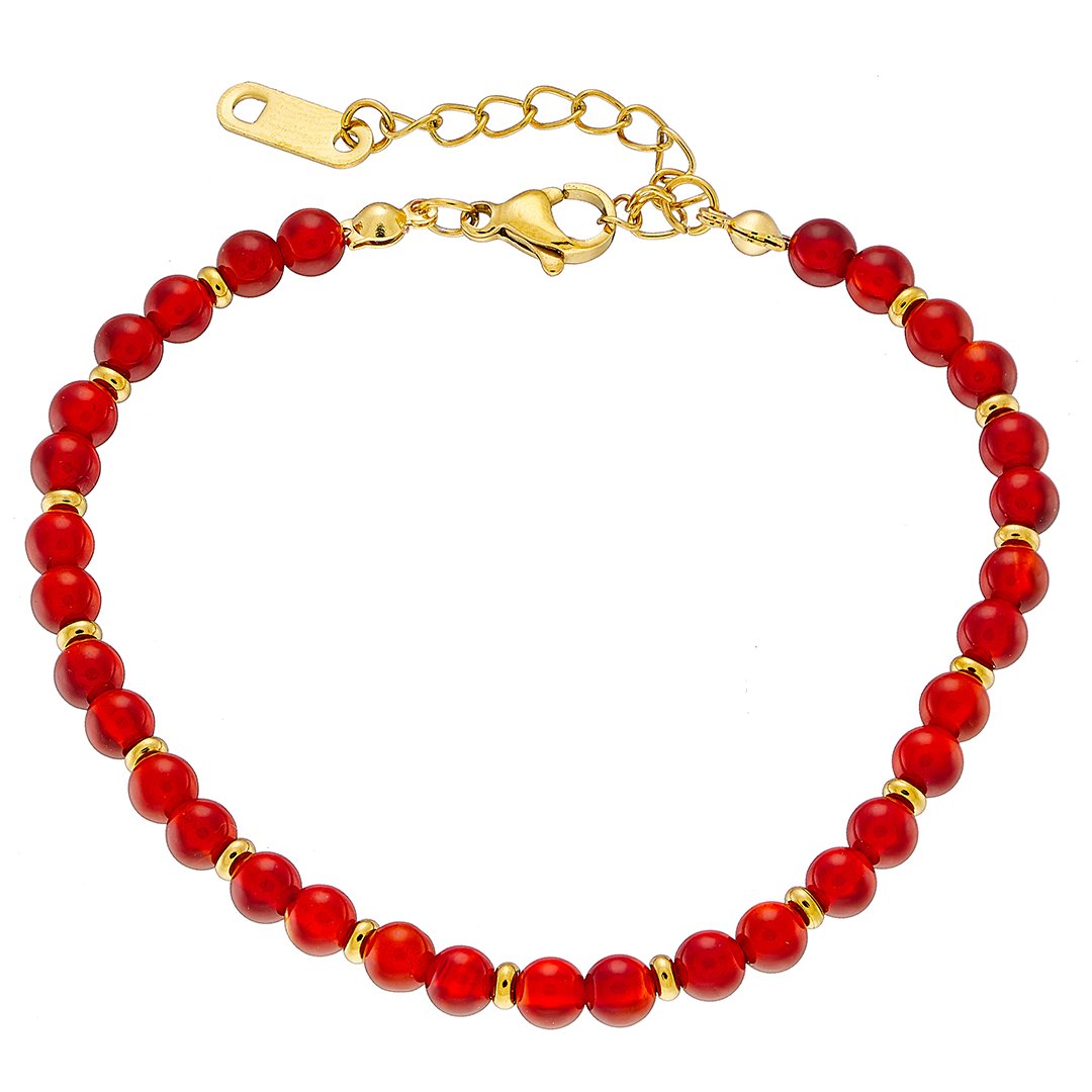 Oxzen βραχιόλι ατσάλινο με ορυκτές πέτρες 4mm βουργουνδί