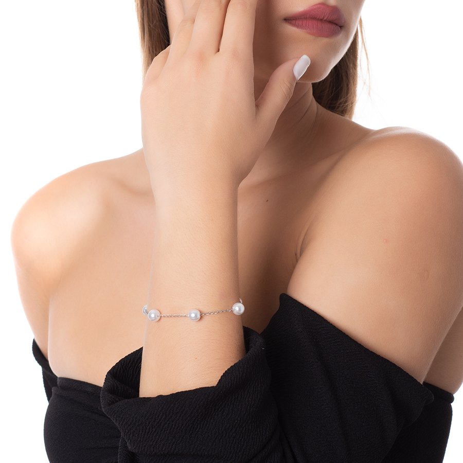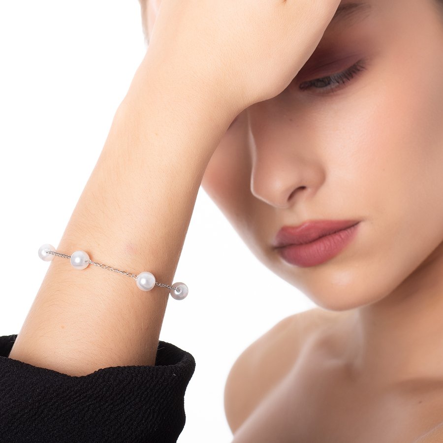 Oxzen βραχιόλι ατσάλινο με πέρλες