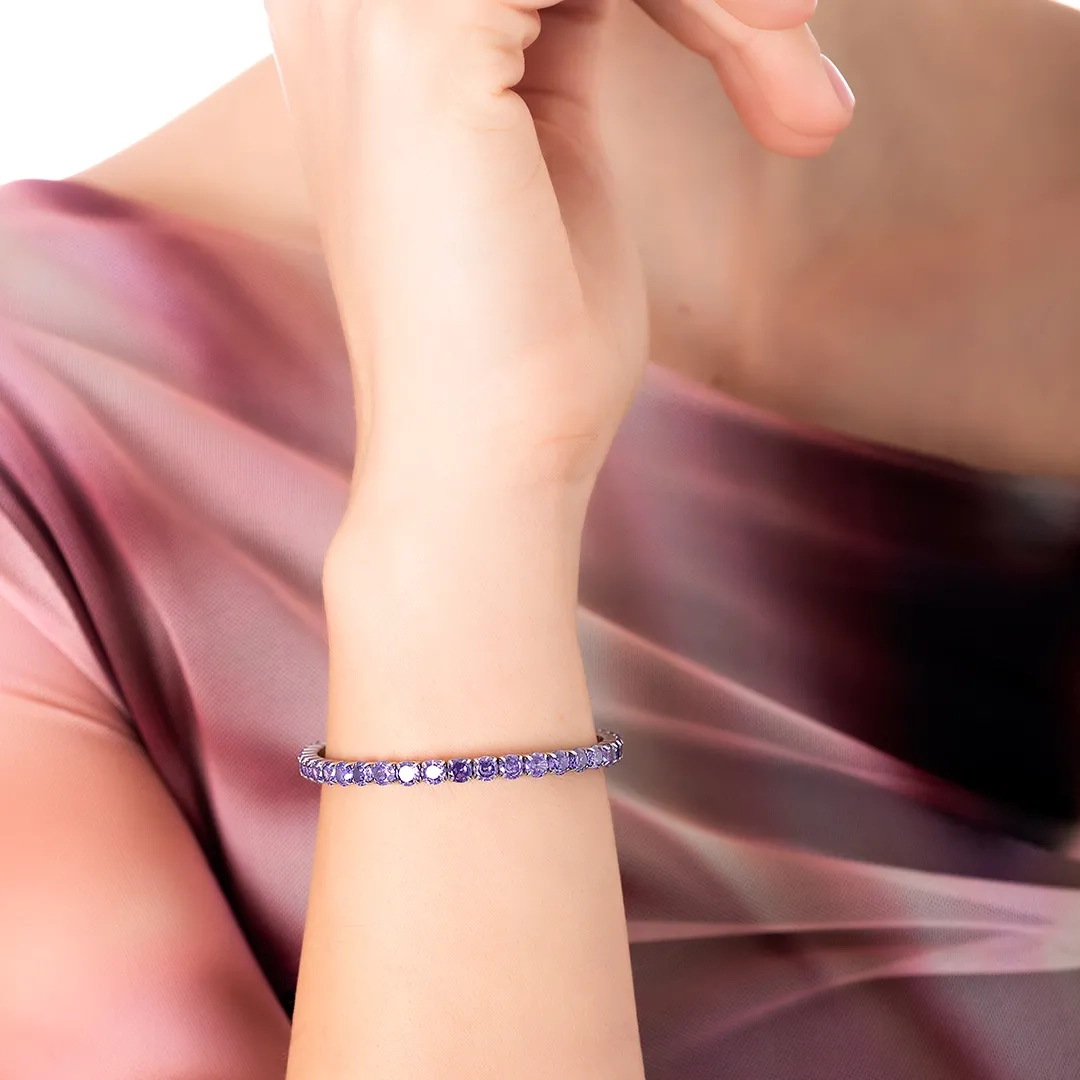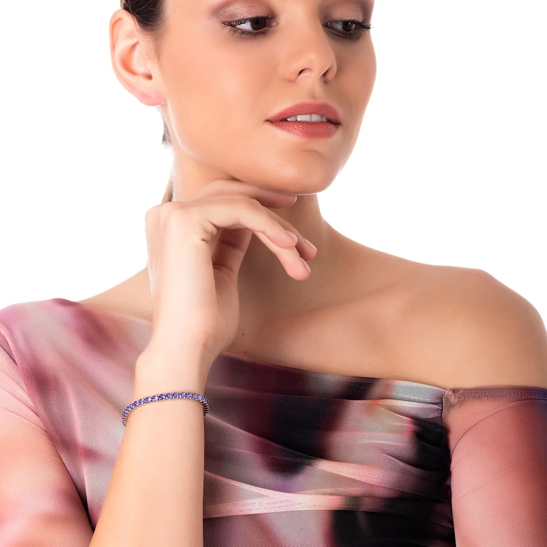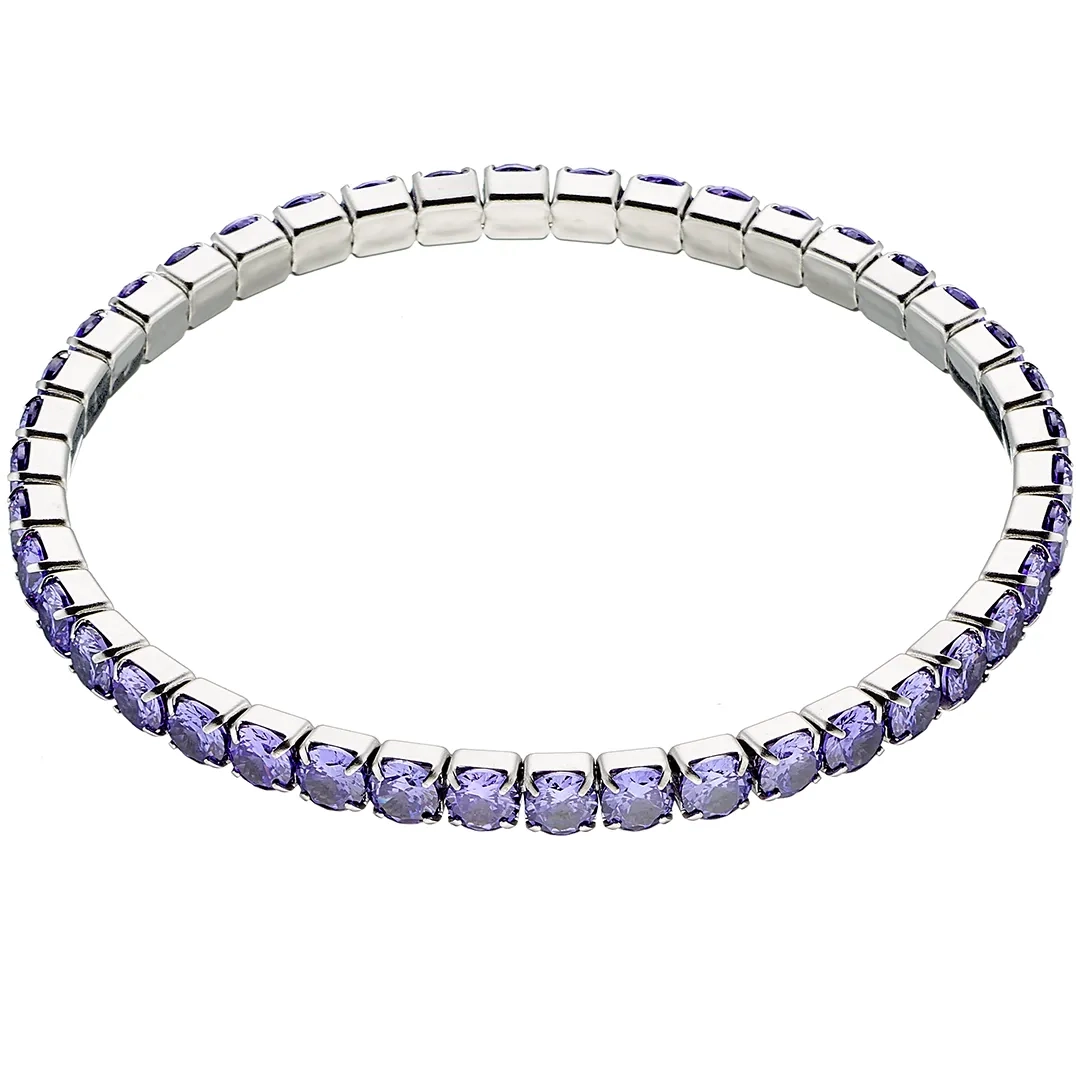 Oxzen βραχιόλι ατσάλινο ριβιέρα ελαστική με μωβ ζιργκόν