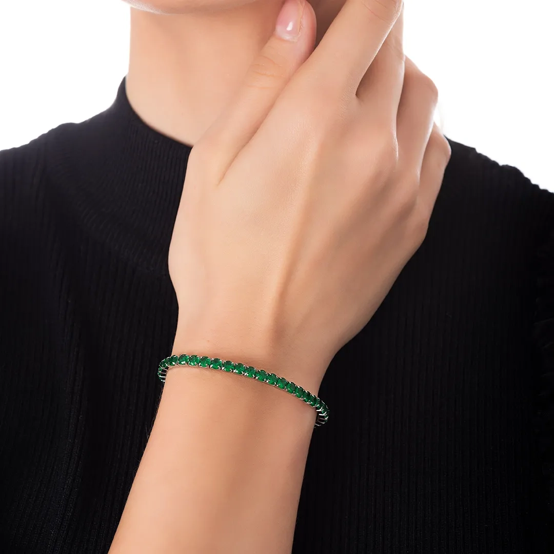 Oxzen βραχιόλι ατσάλινο ριβιέρα ελαστική με πράσινα ζιργκόν
