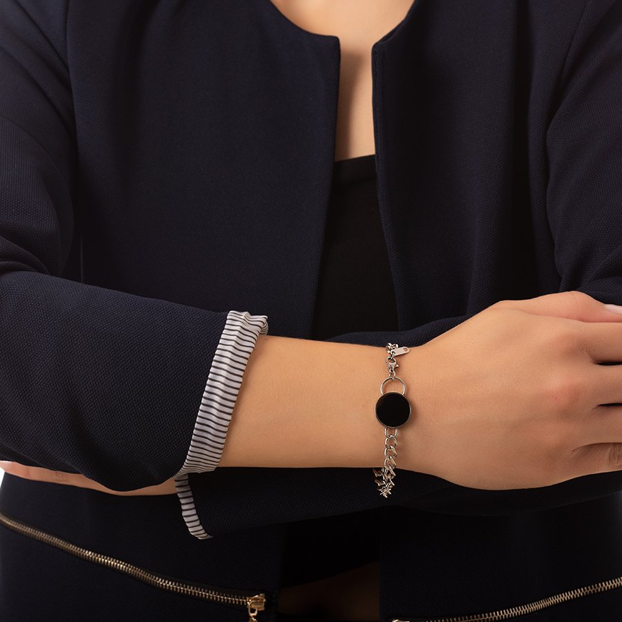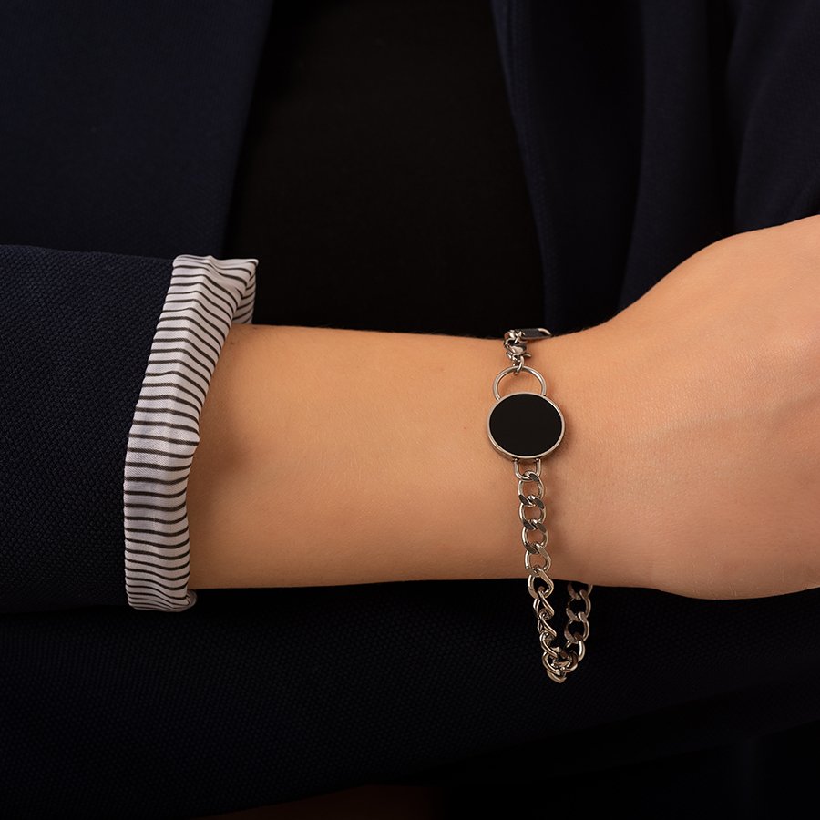 Oxzen βραχιόλι ατσάλινο με μαύρα κεραμικά στοιχεία