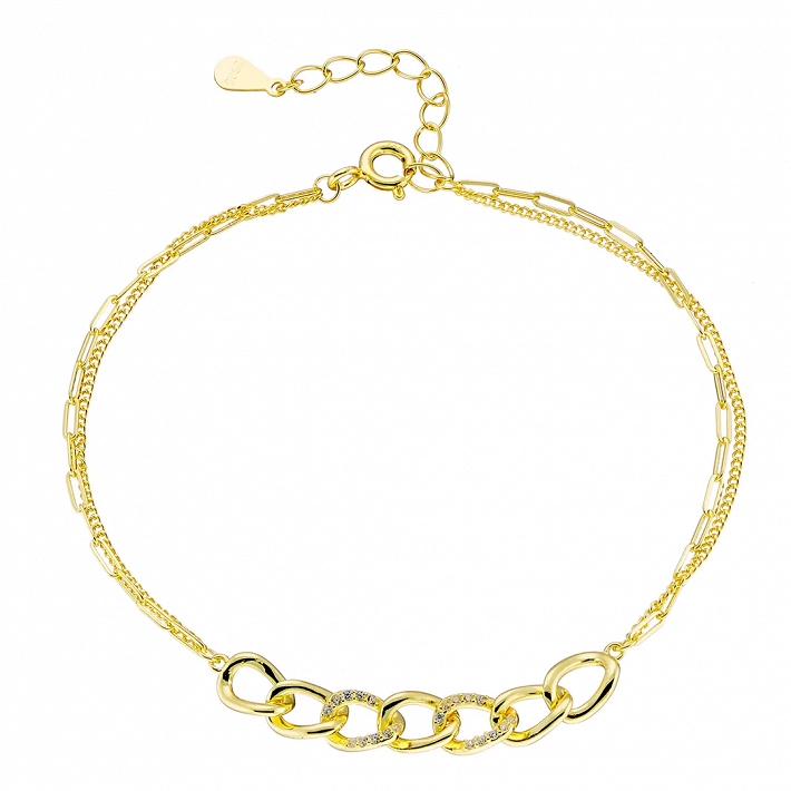 Oxzen βραχιόλι γυναικείο ασημένιο, αλυσίδα με λευκά ζιργκόν