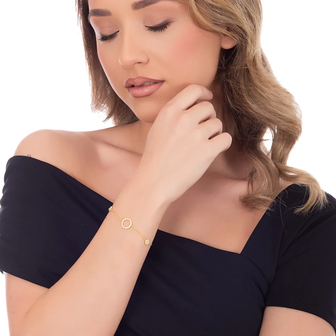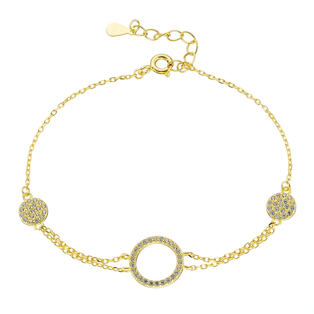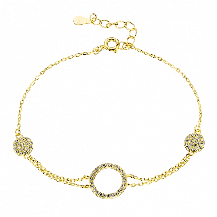 Oxzen βραχιόλι γυναικείο ασημένιο με κύκλους και λευκά ζιργκόν