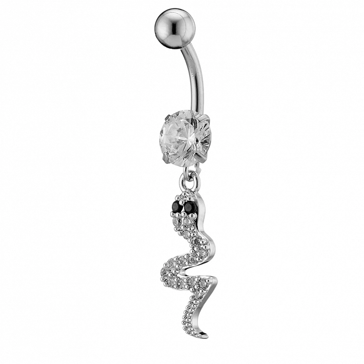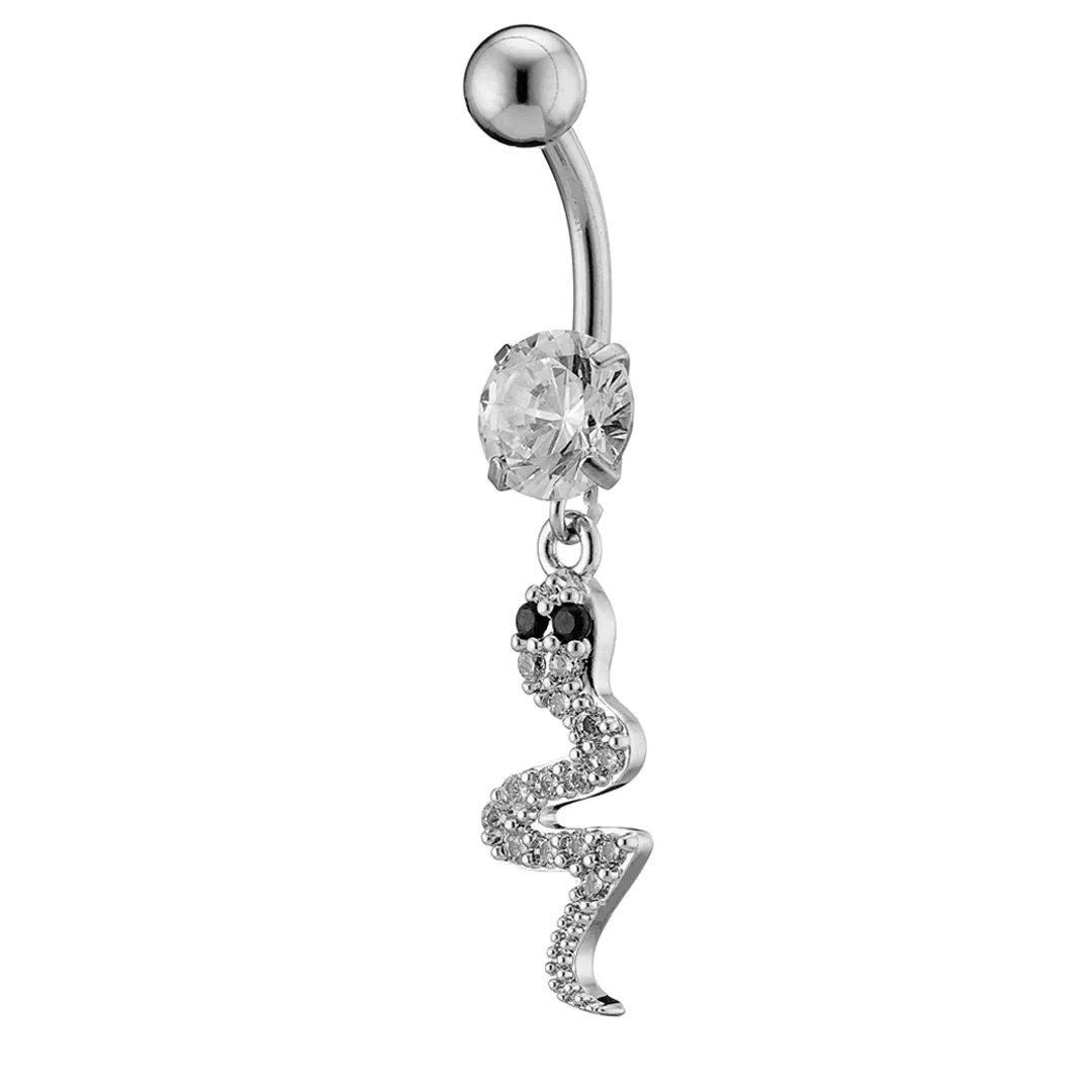 Σκουλαρίκι αφαλού από χειρουργικό ατσάλι, φίδι με λευκά ζιργκόν