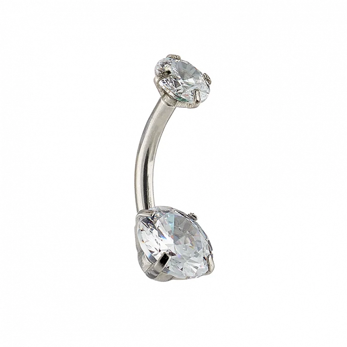 Σκουλαρίκι αφαλού από χειρουργικό ατσάλι με λευκά ζιργκόν