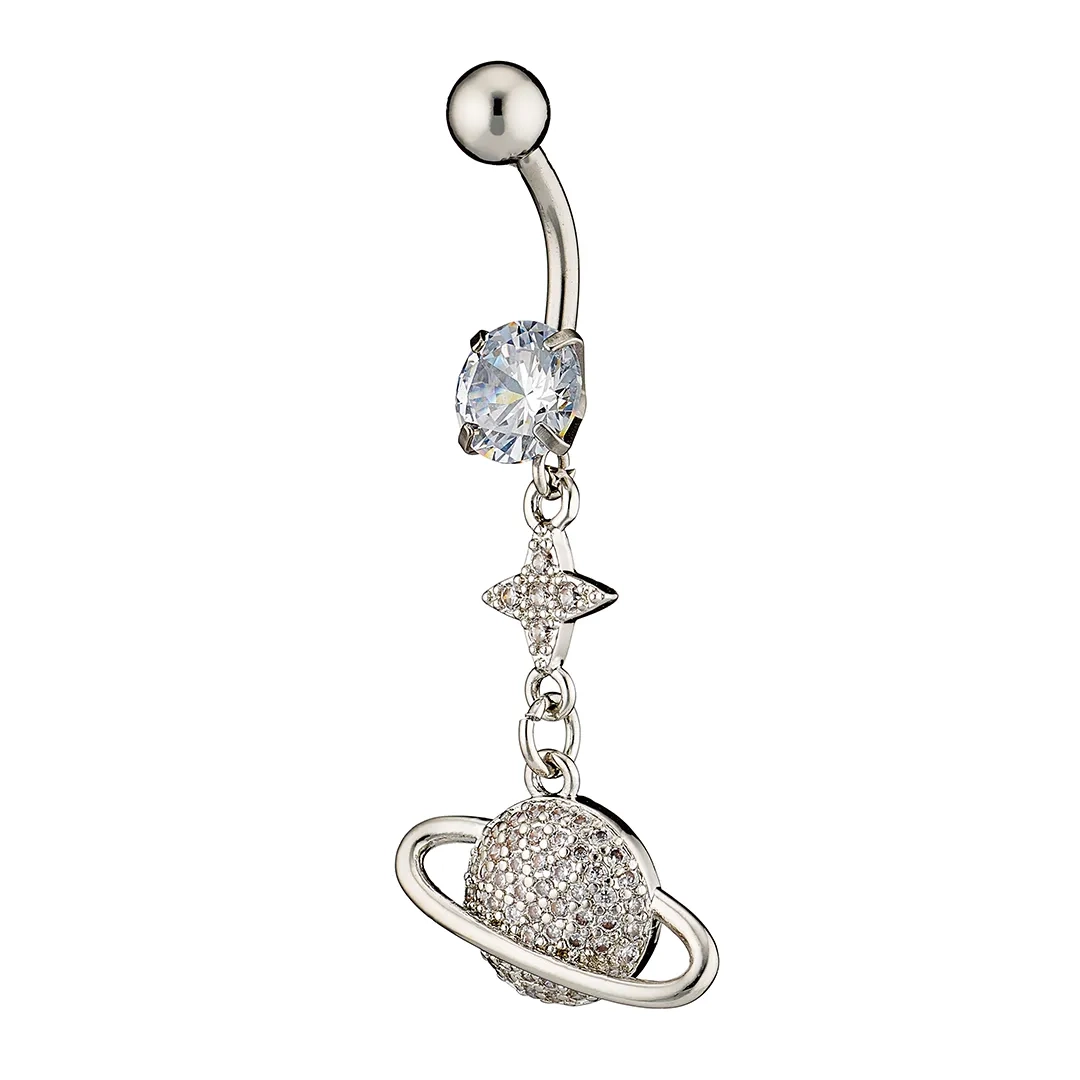 Σκουλαρίκι αφαλού από χειρουργικό ατσάλι με λευκά ζιργκόν