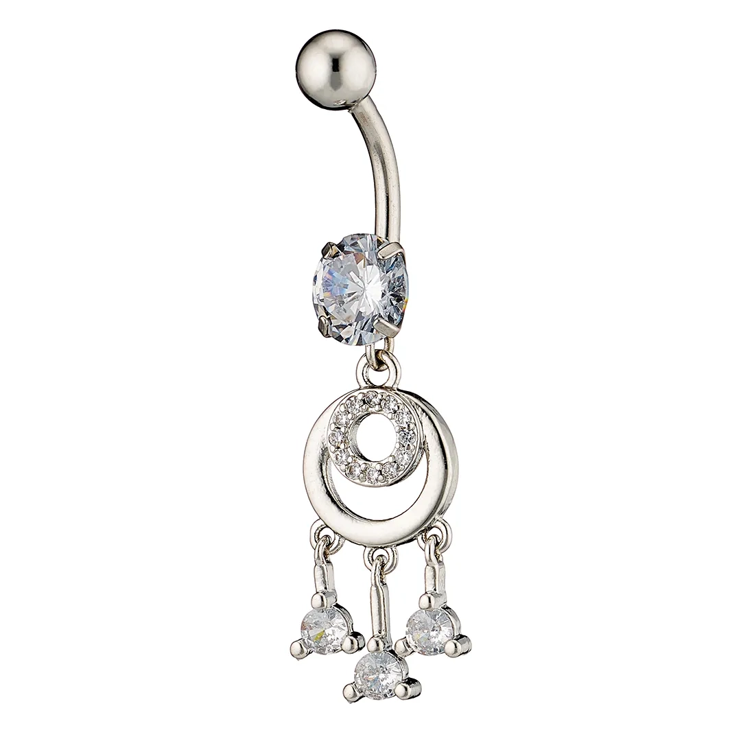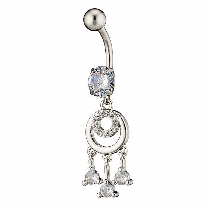Σκουλαρίκι αφαλού από χειρουργικό ατσάλι με λευκά ζιργκόν
