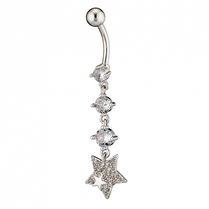Σκουλαρίκι αφαλού από χειρουργικό ατσάλι με λευκά ζιργκόν