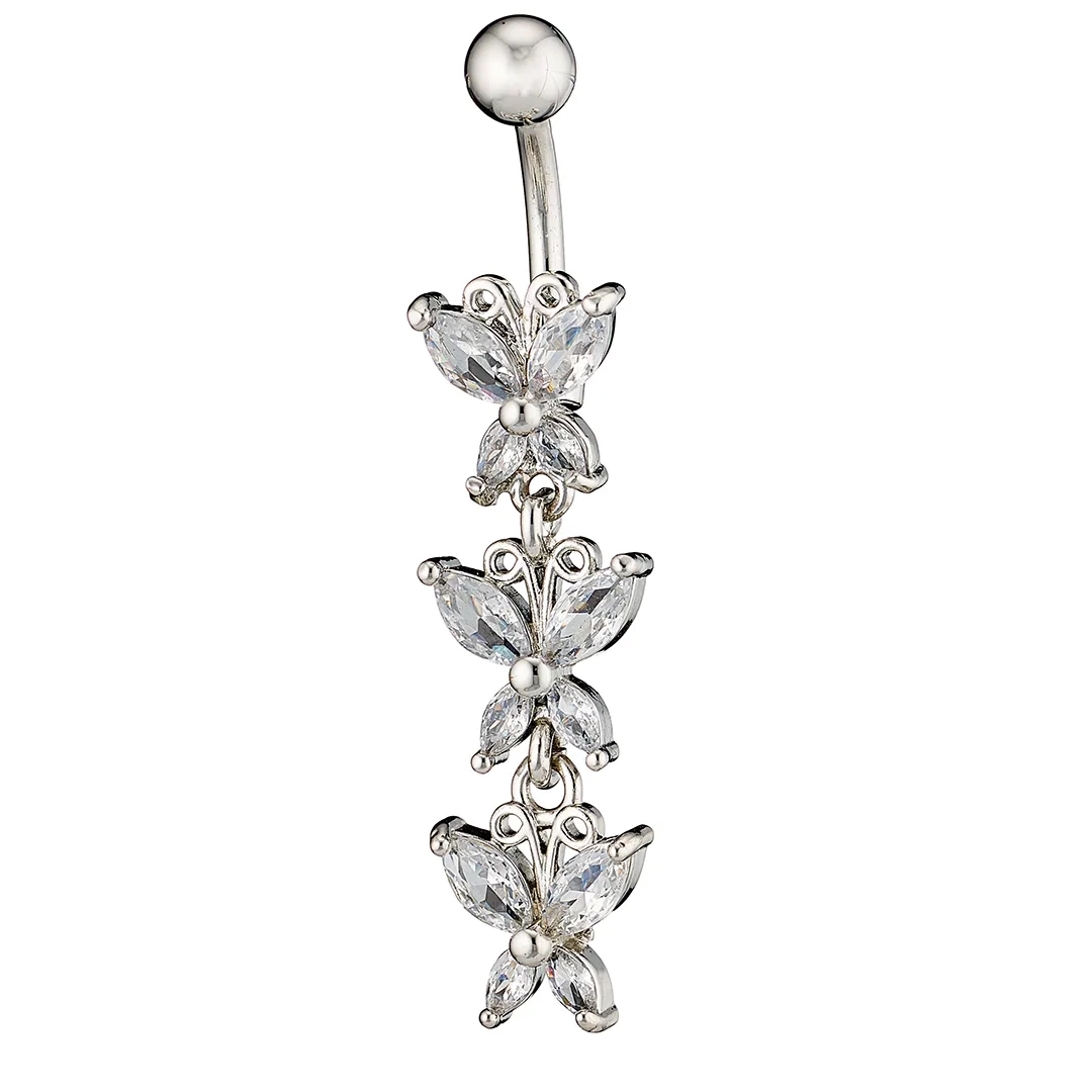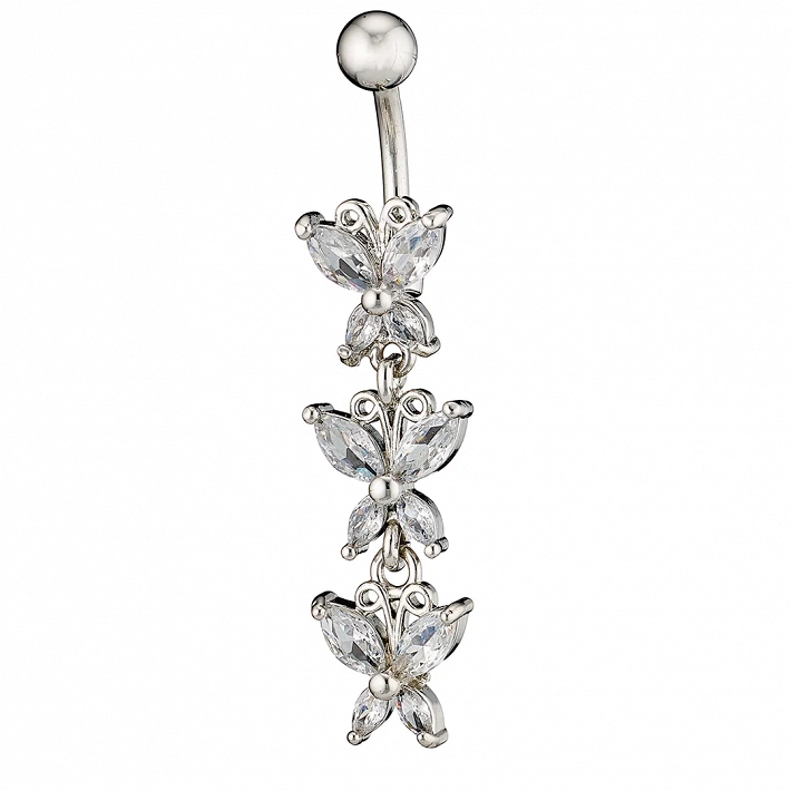 Σκουλαρίκι αφαλού από χειρουργικό ατσάλι με λευκά ζιργκόν
