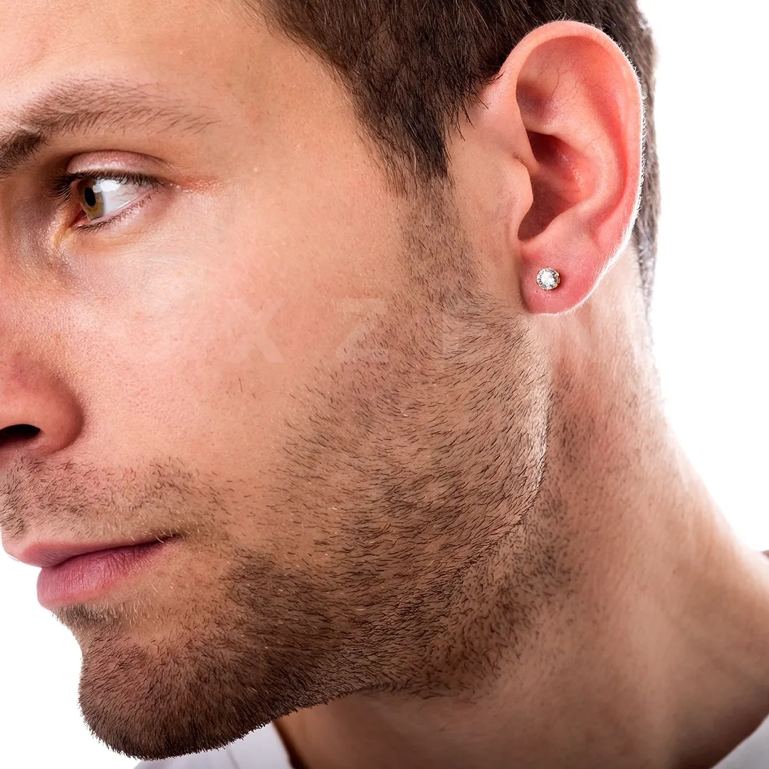 Σκουλαρίκι ανδρικό από ανοξείδωτο ατσάλι επιχρυσωμένο με στρογγυλή λευκή πέτρα ζιργκόν 3mm