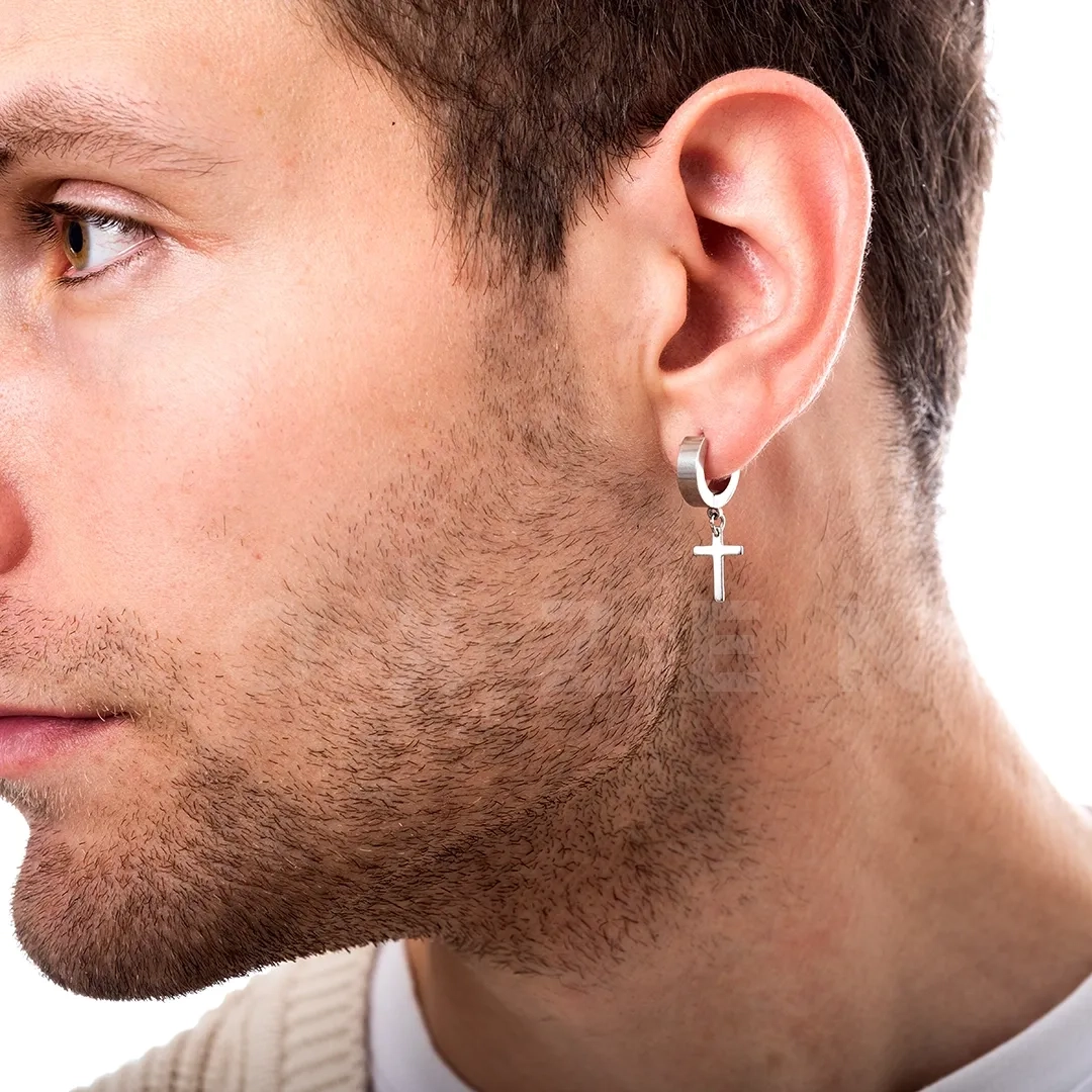 Σκουλαρίκι ανδρικό από ανοξείδωτο ατσάλι, κρικάκι (3 x 10)mm με σταυρό