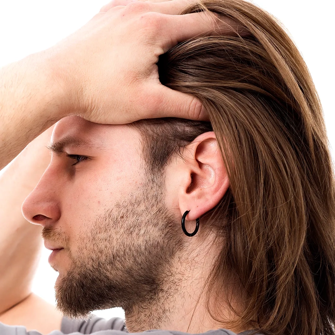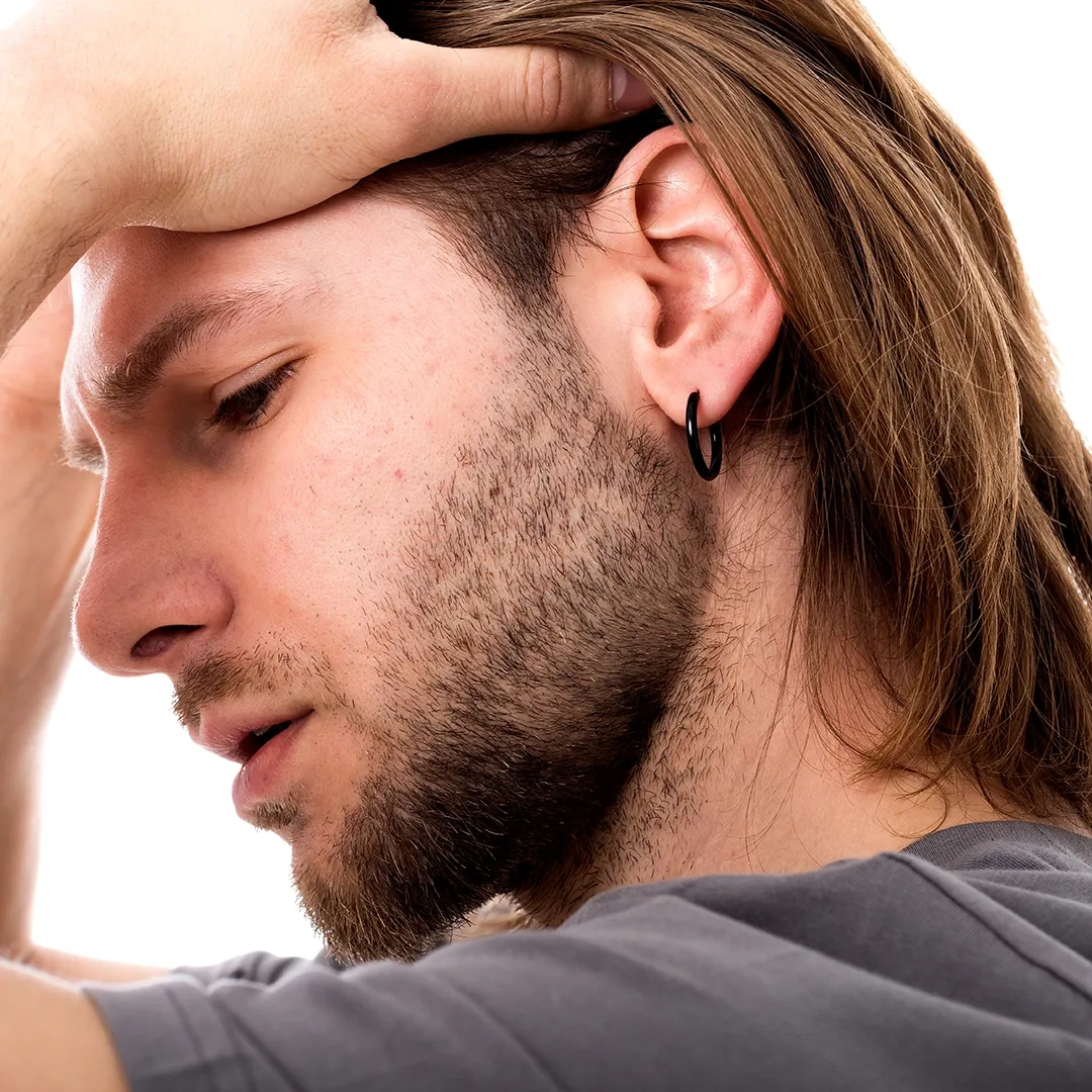 Σκουλαρίκι ανδρικό από ανοξείδωτο ατσάλι, κρικάκι μαύρο (2.5 x 16)mm