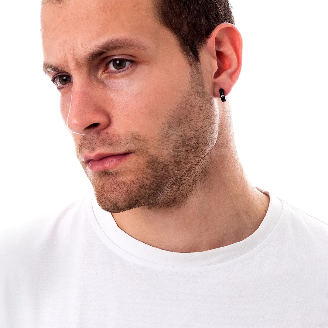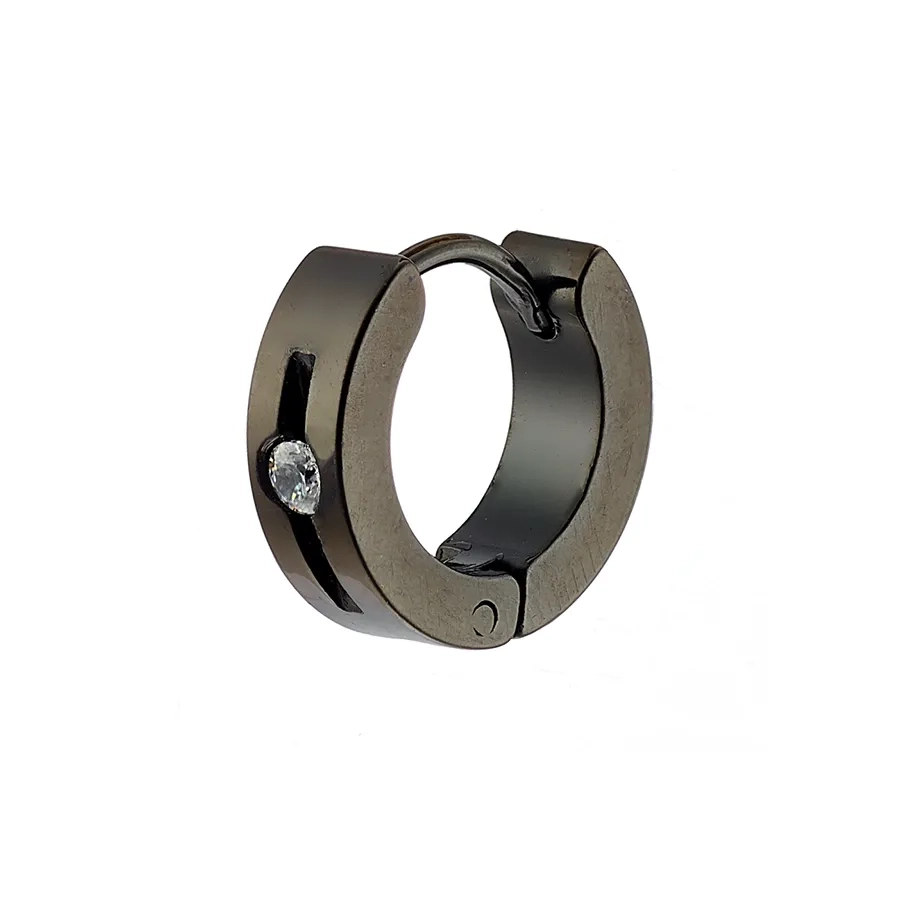 Σκουλαρίκι ανδρικό από ανοξείδωτο ατσάλι, κρίκος 10mm με λευκό ζιργκόν