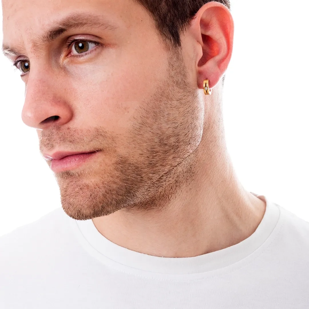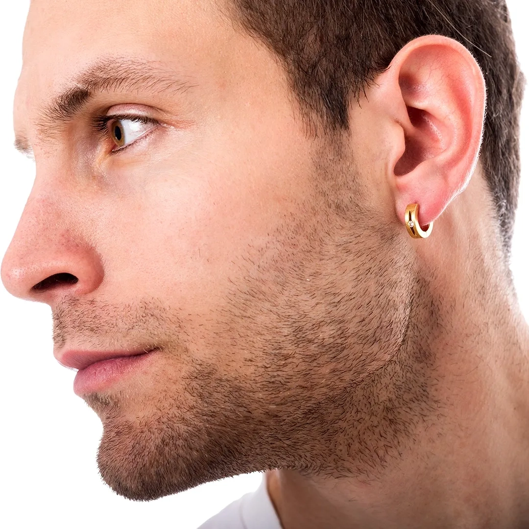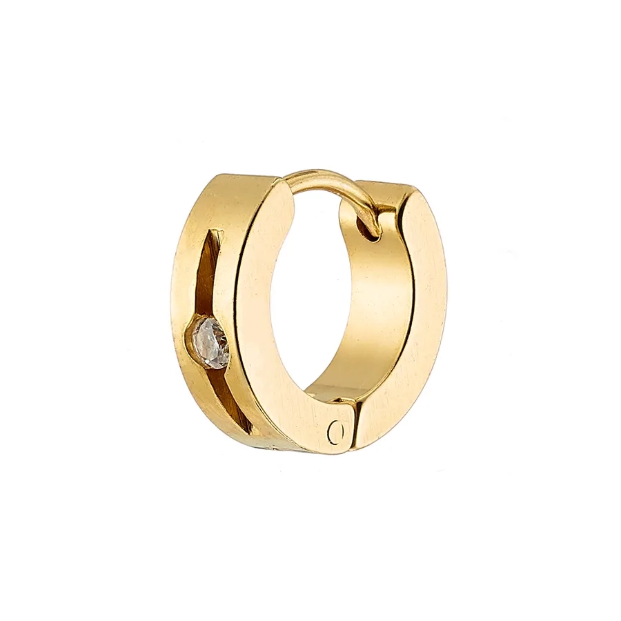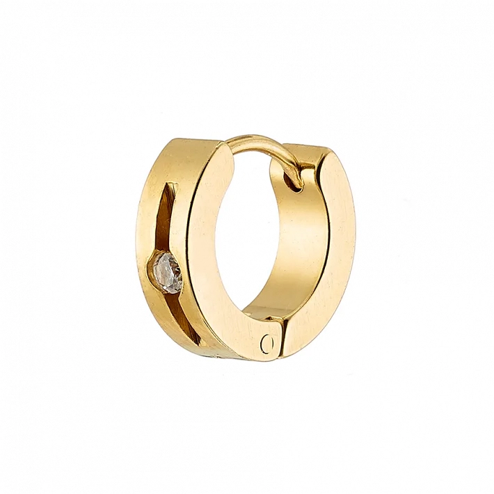 Σκουλαρίκι ανδρικό από ανοξείδωτο ατσάλι, κρίκος 10mm με λευκό ζιργκόν